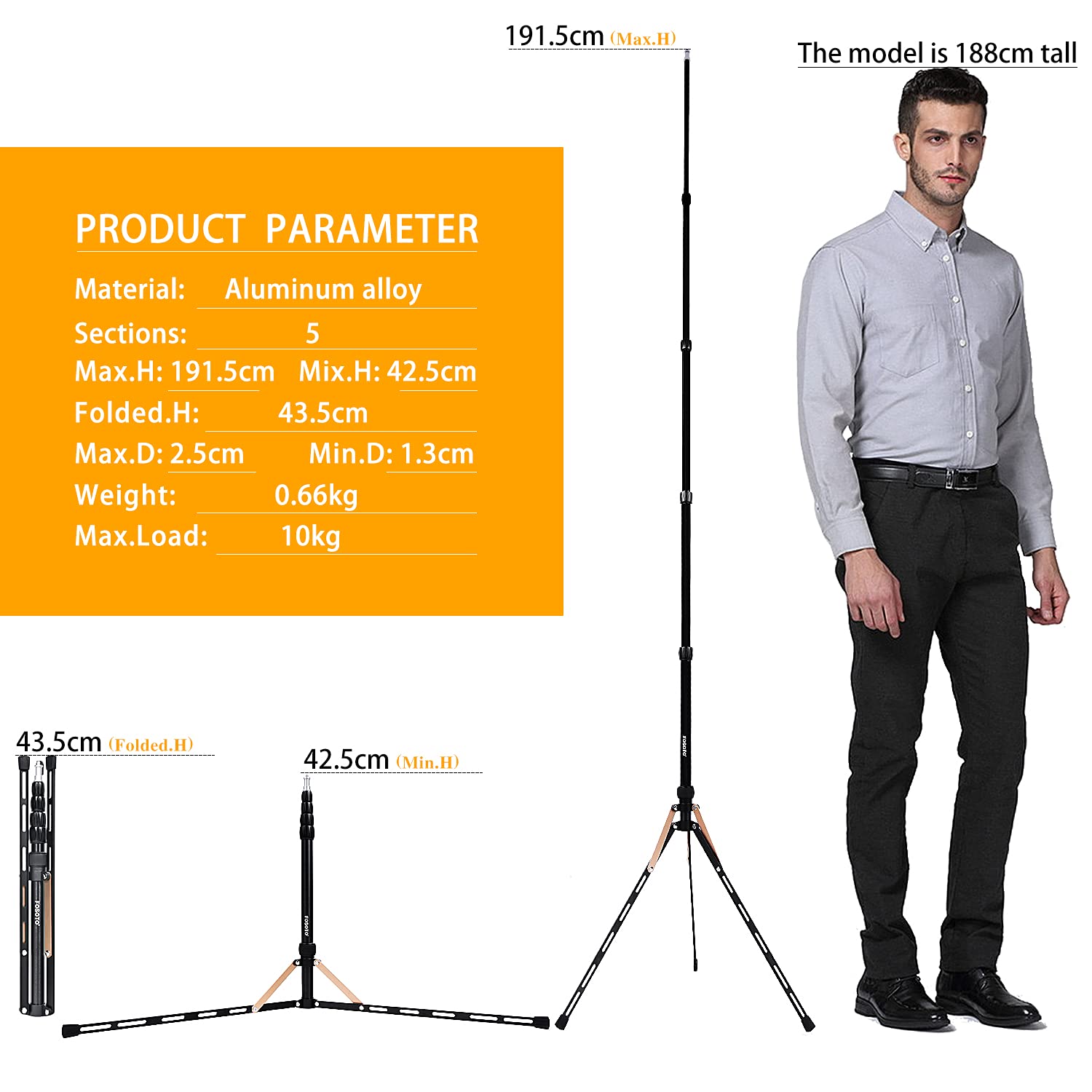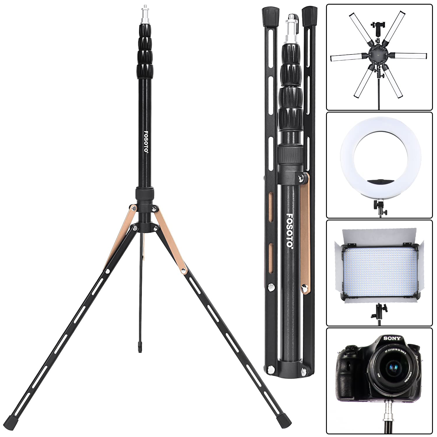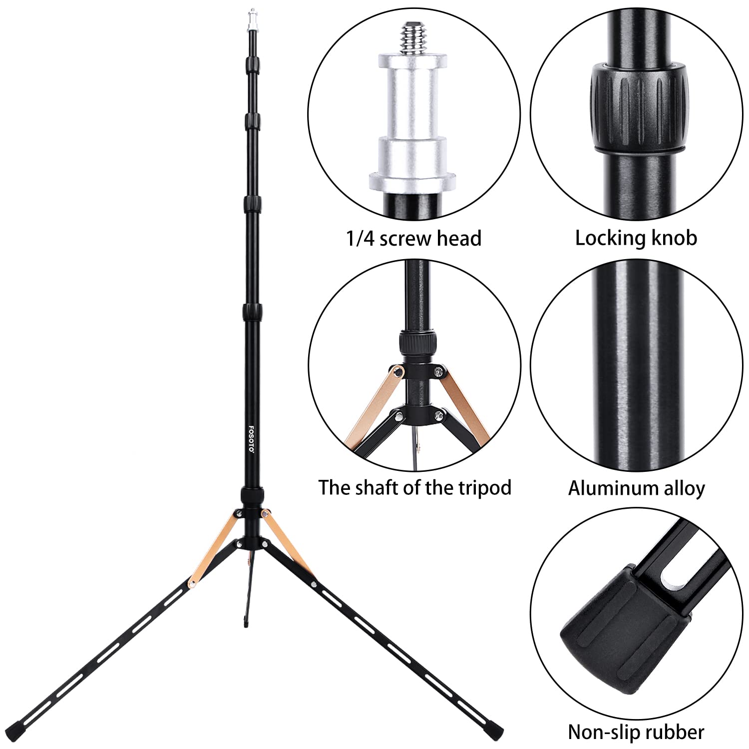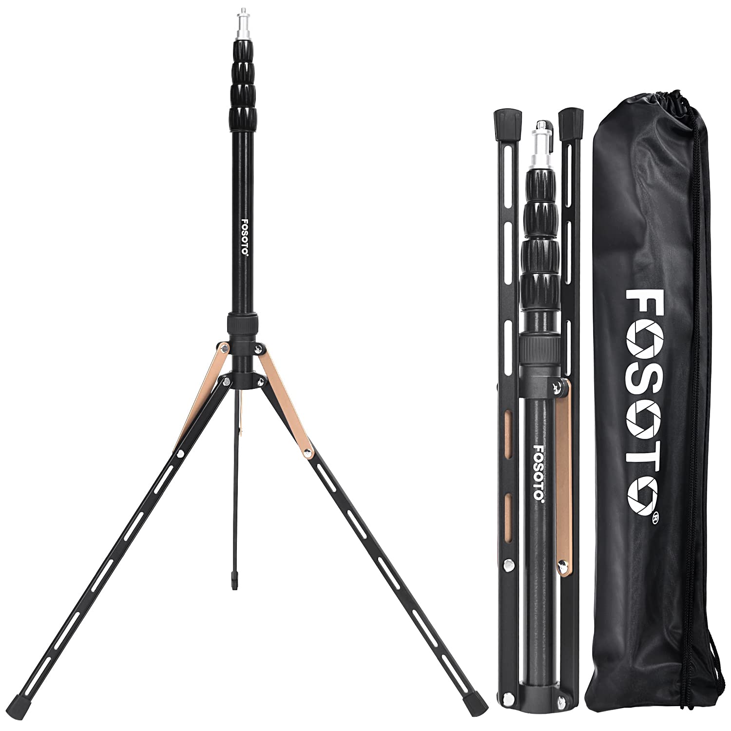 FOSOTO ライトスタンド コンパクト 最高高さ191cmアルミ製 折りたたみ式 三脚ストロボスタンド 写真用 ロックナット式 ライブフォト撮影に適して(金色)