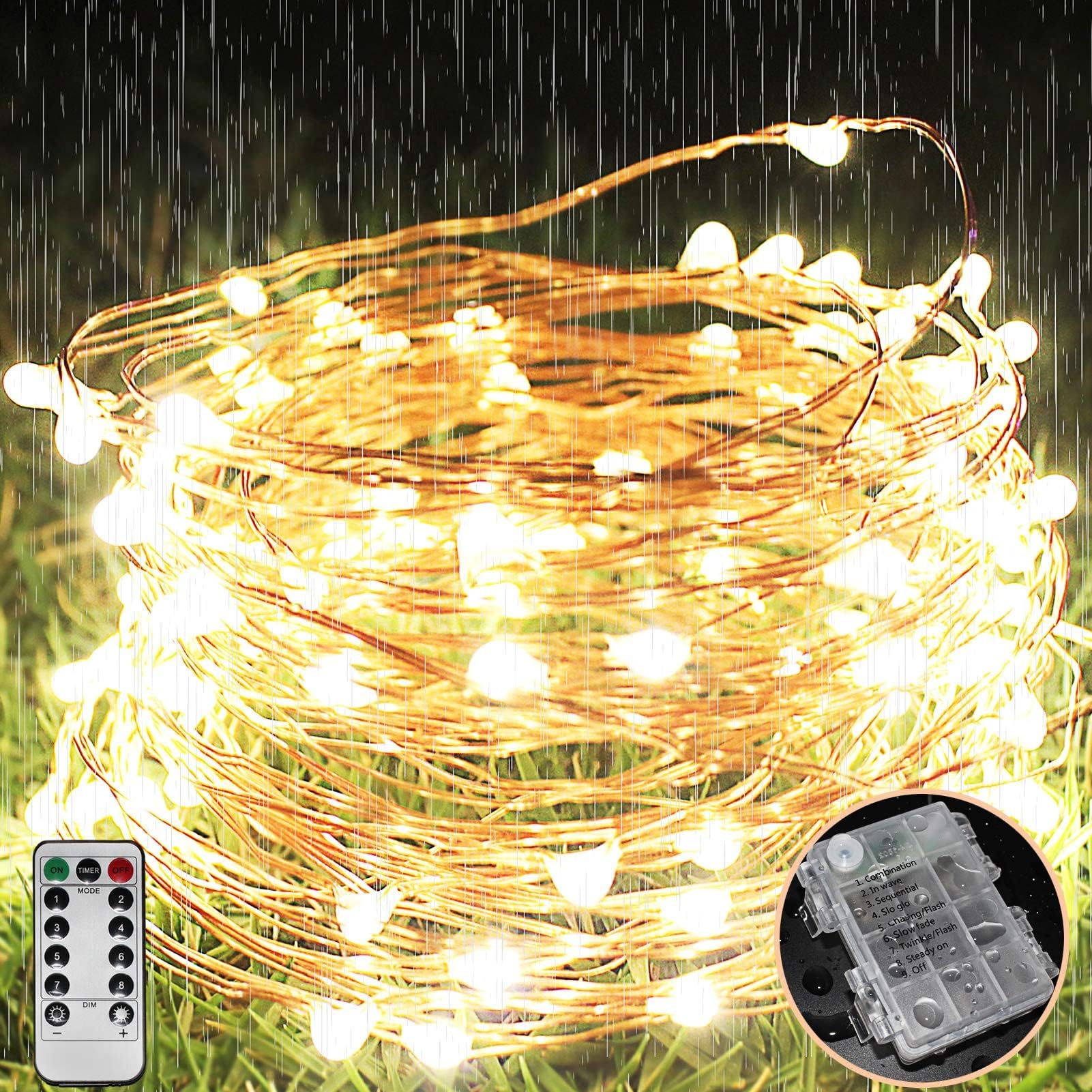 LEDイルミネーションライ ウォームホワイト ホワイト ワイヤーライトフェアリーライト 銅線 電池式8モード 点滅ライト led クリスマス 室内 外兼用 パーティー 飾りライト 防水LEDイルミネーションライト ストリングライトフェアリーライト(10M100LED)