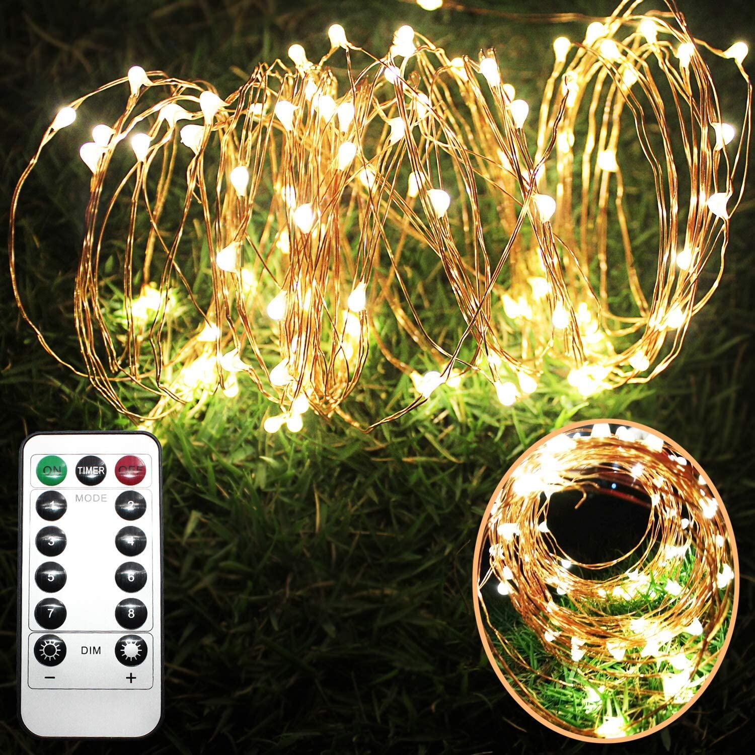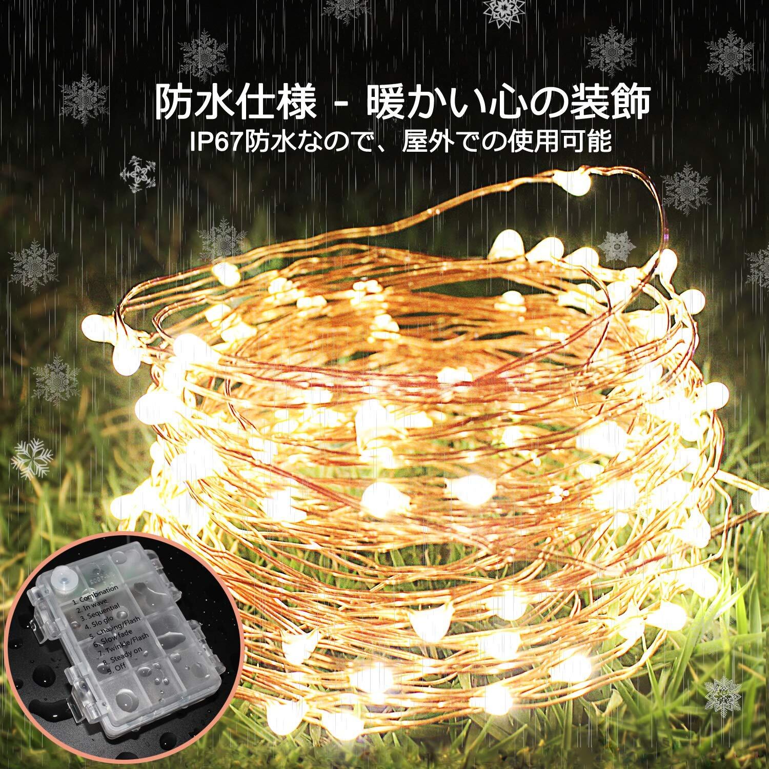 【新着】LEDイルミネーションライ ウォームホワイト ホワイト ワイヤーライトフェアリーライト 銅線 電池式8モード 点滅ライト led クリスマス 室内 外兼用 パーティー 飾りライト 防水LEDイルミネーションライト ストリングライトフェアリーライト(10M100LED) | GIGATERA