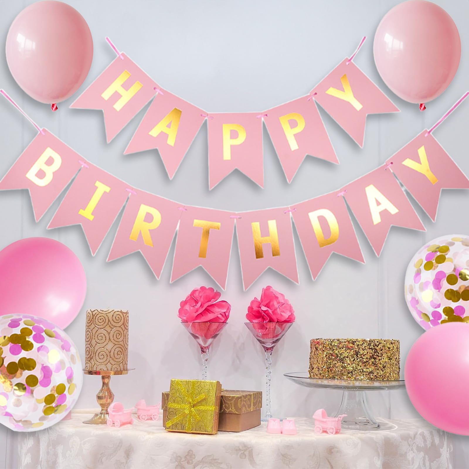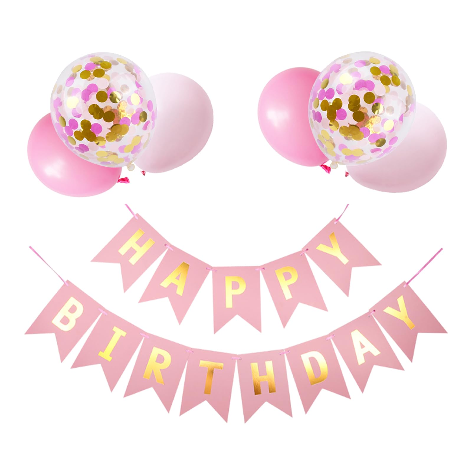 GRESATEK バルーン 誕生日 風船セット HAPPY BIRTHDAY ガーランド きらきら紙吹雪風船 飾り付け 飾り 装飾 バースデー パーティー サプライズ お祝い イベント ピンク ゴールド