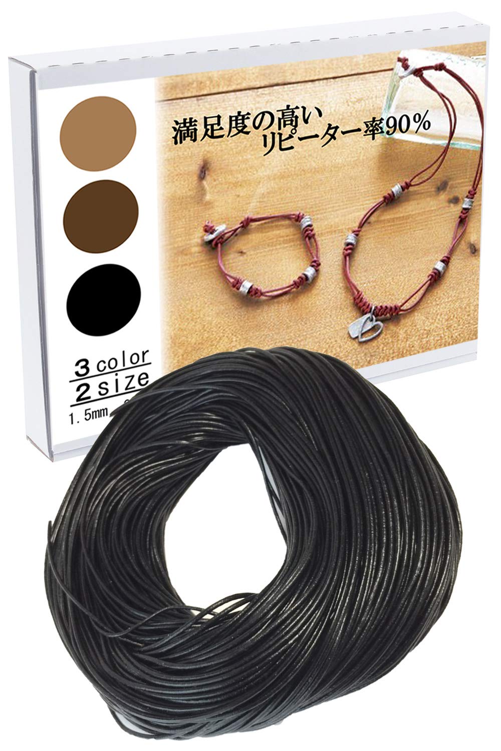 (イーフェザー) 本革 リアル レザー 牛革紐 革紐 丸紐 革ひも (ブラック1.5mm×20m)