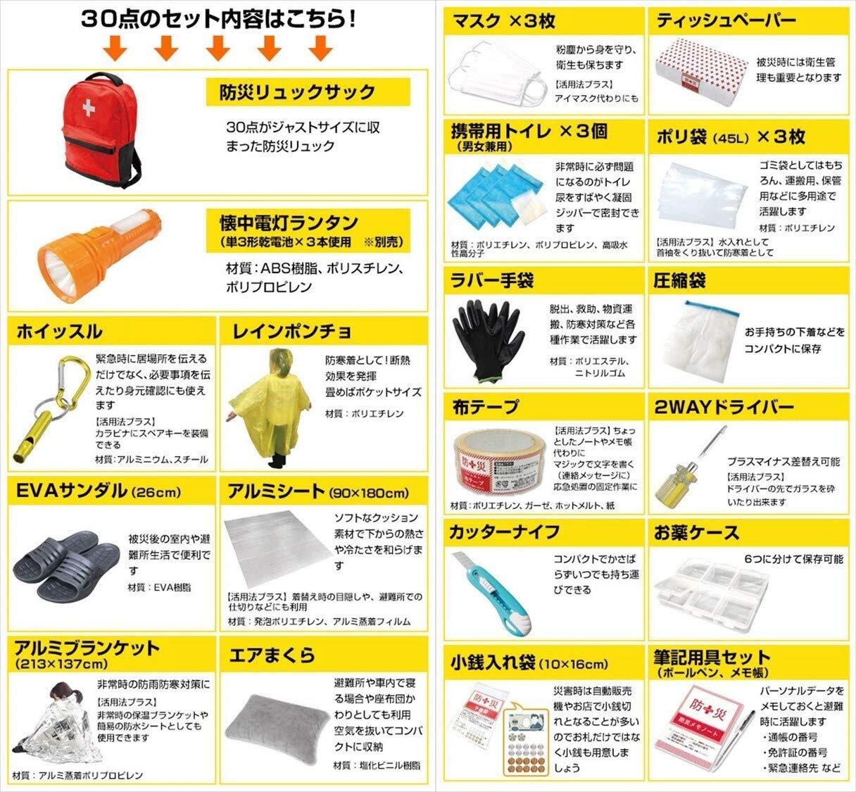 山善(YAMAZEN) 防災リュック 30点 セット 【防災士監修】 一次避難用 給水バッグ 携帯用トイレ 大容量 ブラック YBG-30(BK)