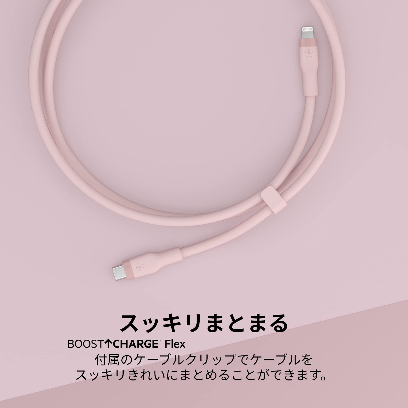 【ケーブルをすっきり整理】すべてのBOOST↑CHARGE Flexケーブルには、ケーブルを簡単かつきれいに保管できる便利なケーブルクリップが付属しており、使用中や外出先でもケーブルをきれいに整理できます。
