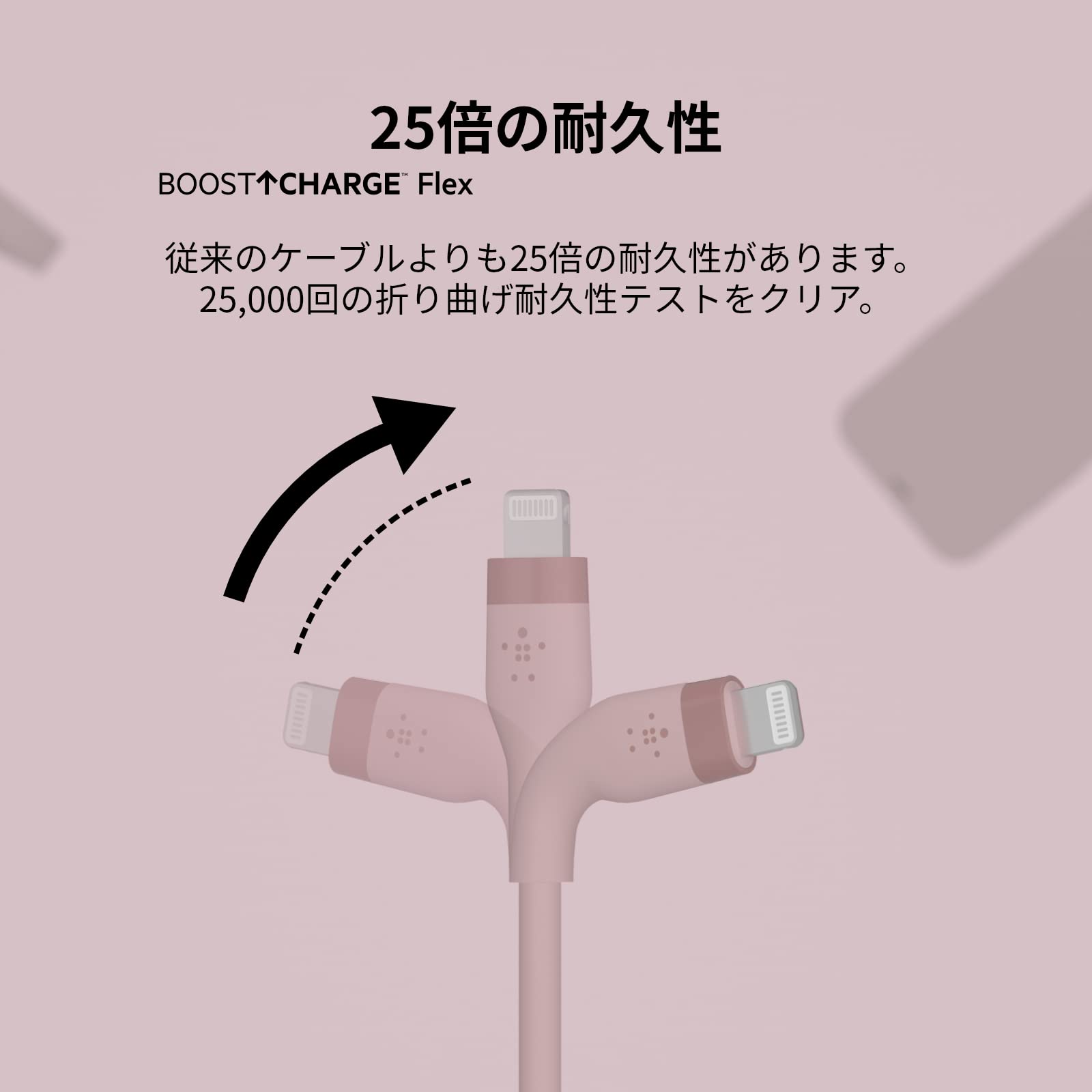 【高耐久性】BOOST↑CHARGE Flexシリコンケーブルは、日常の磨耗に耐えられる設計で、高い耐久性を備えた、長く使用できるケーブルです。
