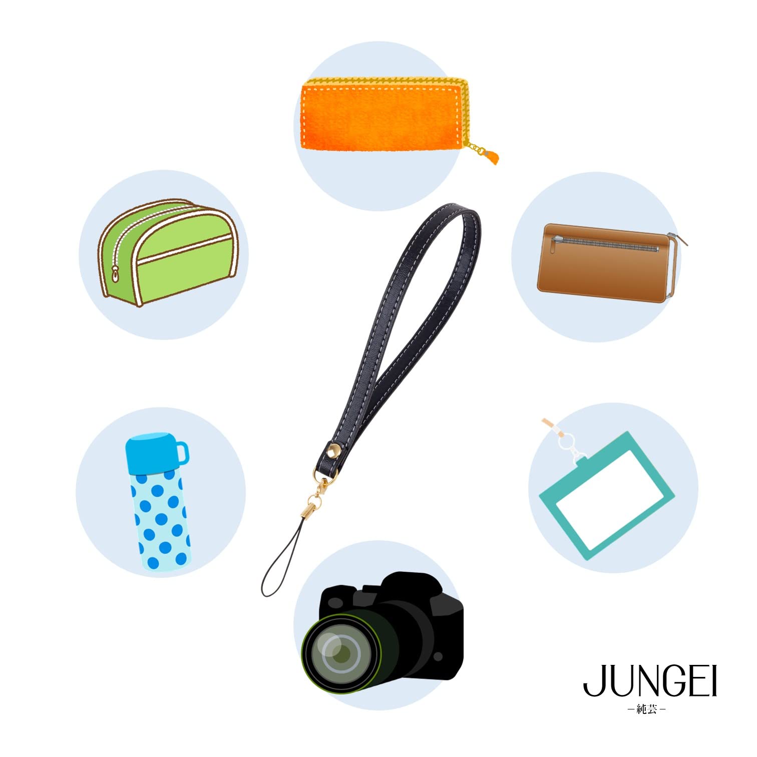 ?【高級合皮レザーのハンドストラップ】高品質な合皮を利用して作られたハンドストラップです。革に約2mmの厚みがあり高級感を感じられる一品です。