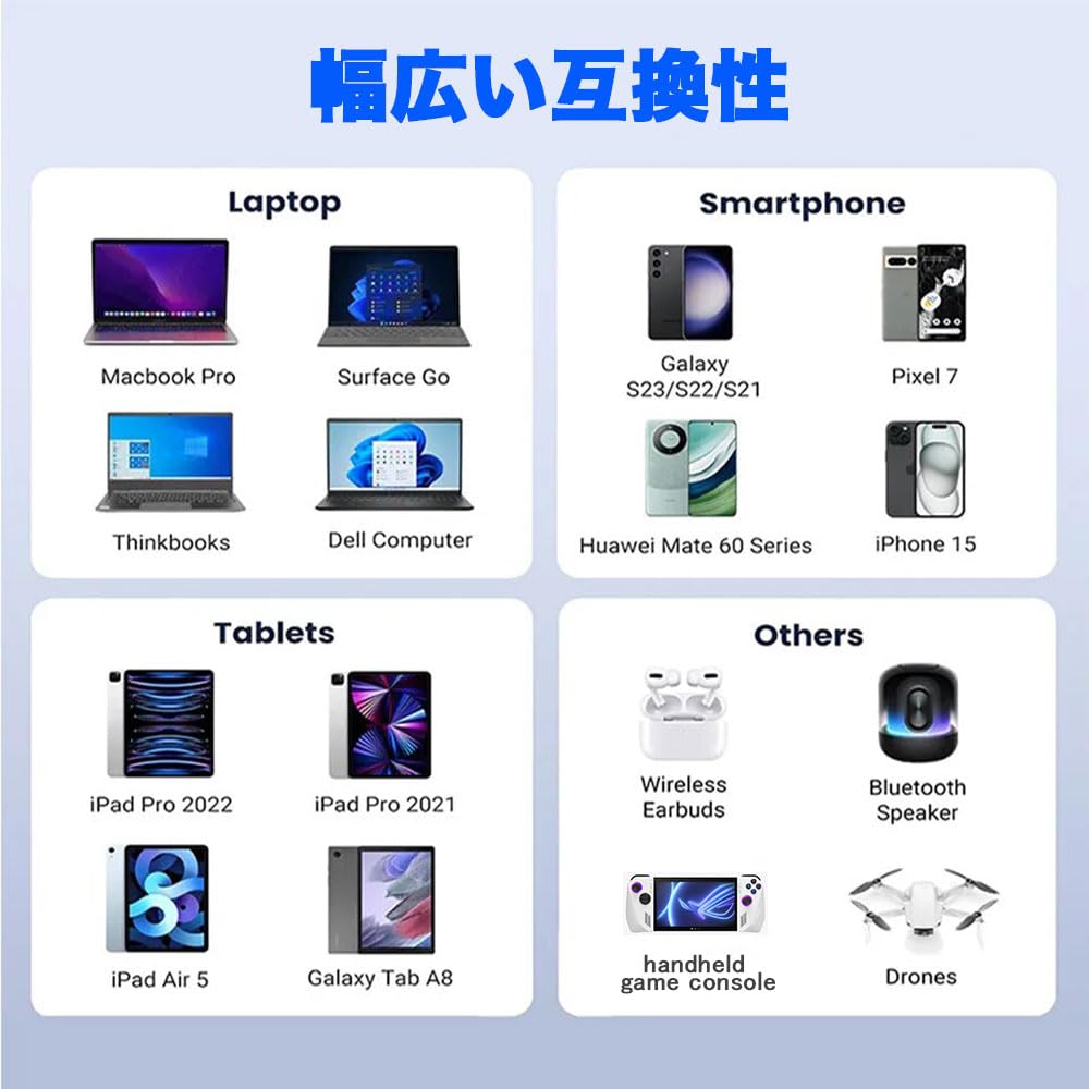 【幅広い互換性】ノートパソコン、スマートフォン、MacBook Pro/Air、Xperia、AQUOS、Galaxy、Pixelなど、Type-C端子を搭載した多様なデバイスに対応。【安心のアフターサービス】商品到着後、何か問題がございましたら、アカウント内の「注文履歴」から販売者にお問い合わせください。迅速に対応いたします。