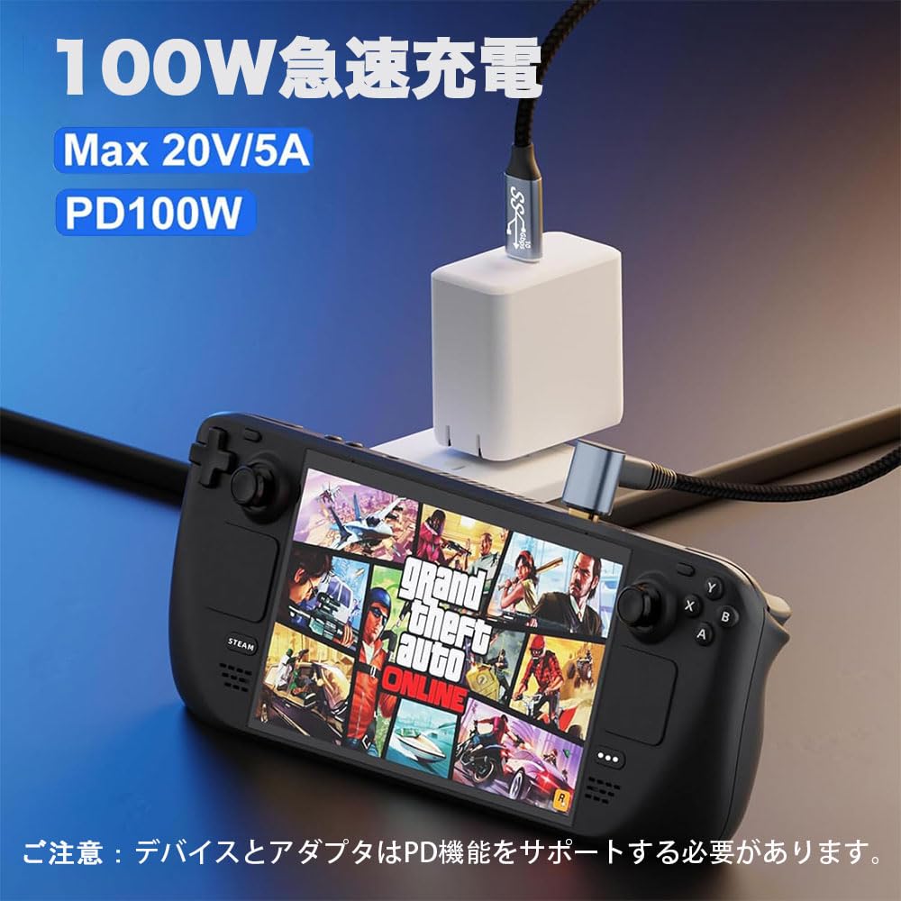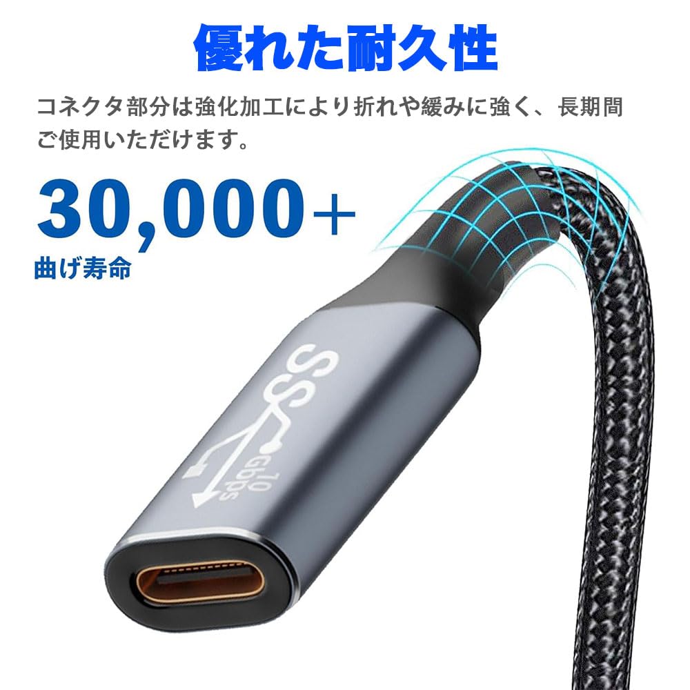 Type C 延長ケーブル L字 1M USB C オス-メス L型 PD100W急速充電対応 USB 3.2 Gen2(10Gbps) パソコン、タブレット、スマートホン、MacBook Pro/Air、Galaxy S25/S24、Xperia、AQUOS等タイプC機種対応