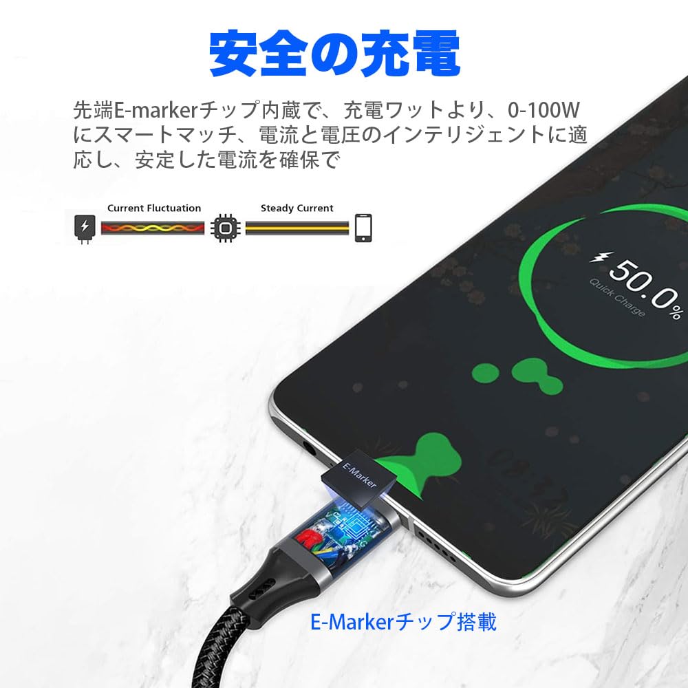 【100W充電対応】このUSB C延長ケーブルは100W(5A/20V)急速充電とスマートチップを組み合わせて、急速充電の同時に酷い熱を起こしません。(ご注意:100Wの充電効果を達したいなら、必ず接続ケーブルと接続したいデバイスは100Wをサポートします。もし、ごデバイスとケーブルは100Wの充電速度をサポートしない場合、100Wの充電速度に達しないことになります。予めご了承ください。)