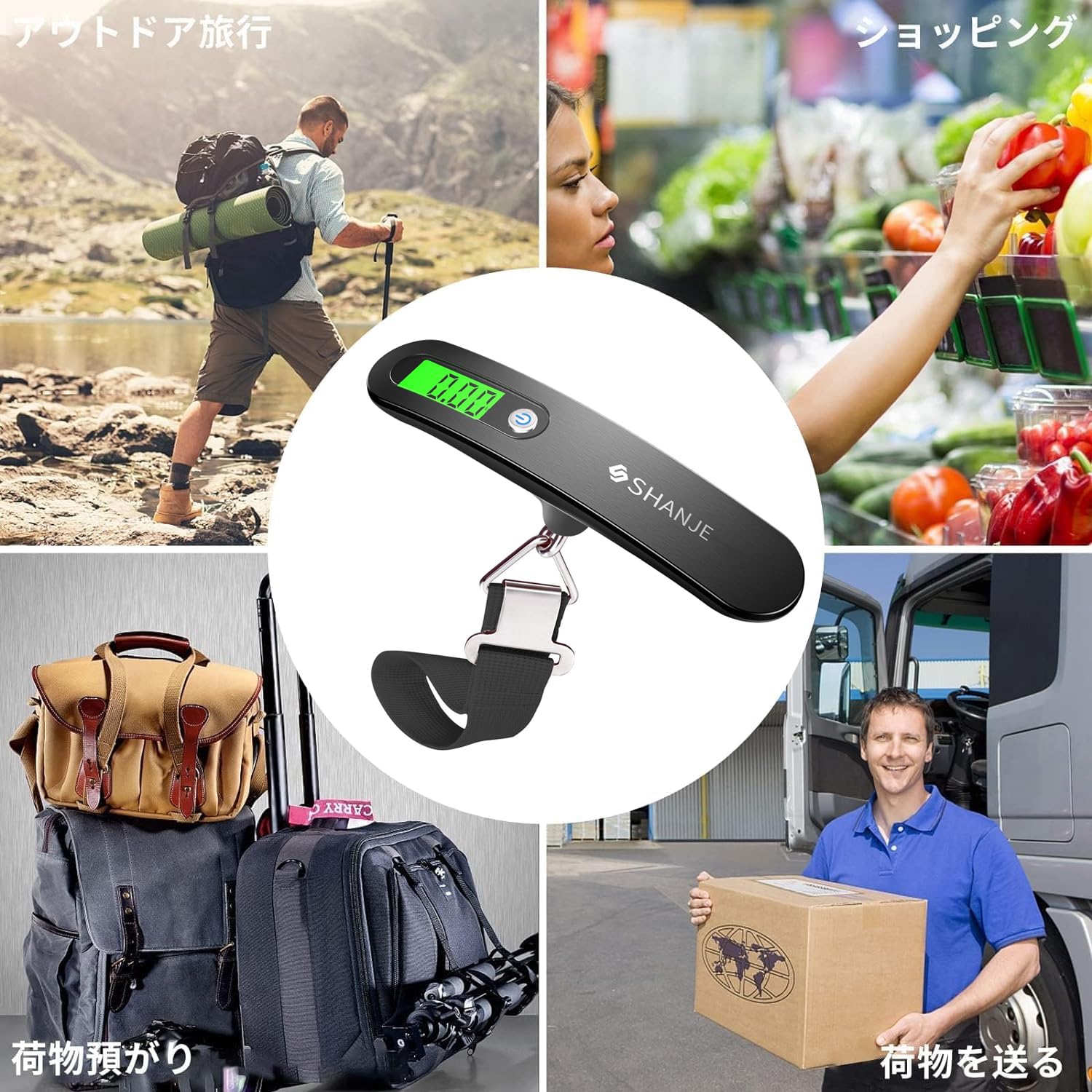 【広範囲】デジタルはかりはいつでも、どこでも荷物の重さを測定できます。吊り下げ式のスケールはスーツケースなどを簡単に測れます。旅行、アウトドア、つり、ショッピング、家庭用などに役立ちます。shanjeストアからご購入される場合、の1年間が付いています。1年期間内の故障は、当社に連絡を下されば責任を持って対応致します。