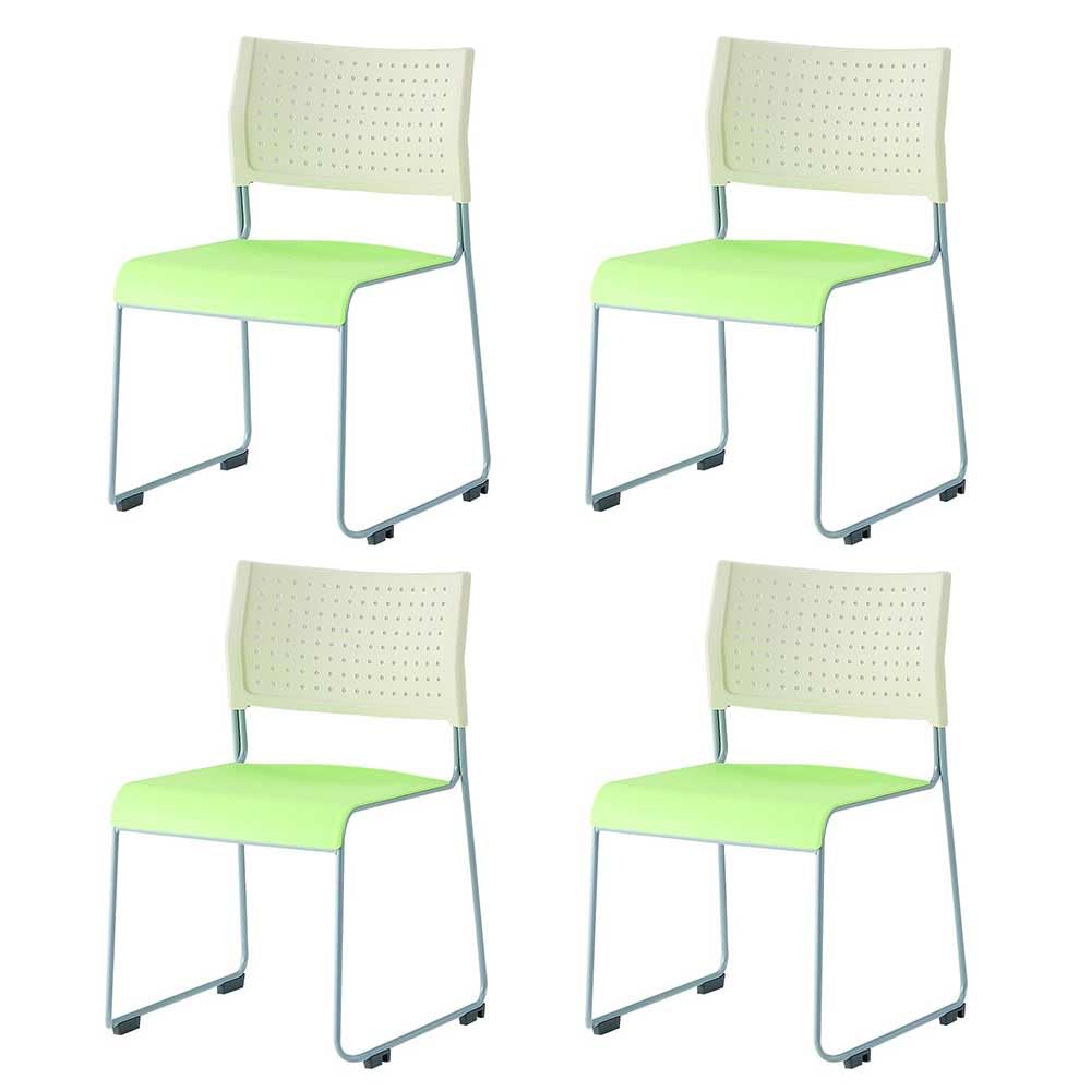 【セール】【4脚セット】【背/樹脂 座/樹脂】アイリスチトセ ミーティングチェア ライタス 積み重ね可能 連結可能 スタッキングチェア 会議椅子 会議チェア 業務椅子 会議 休憩室 オフィスチェア LTS-110Z ホワイト×グリーン | GIGATERA