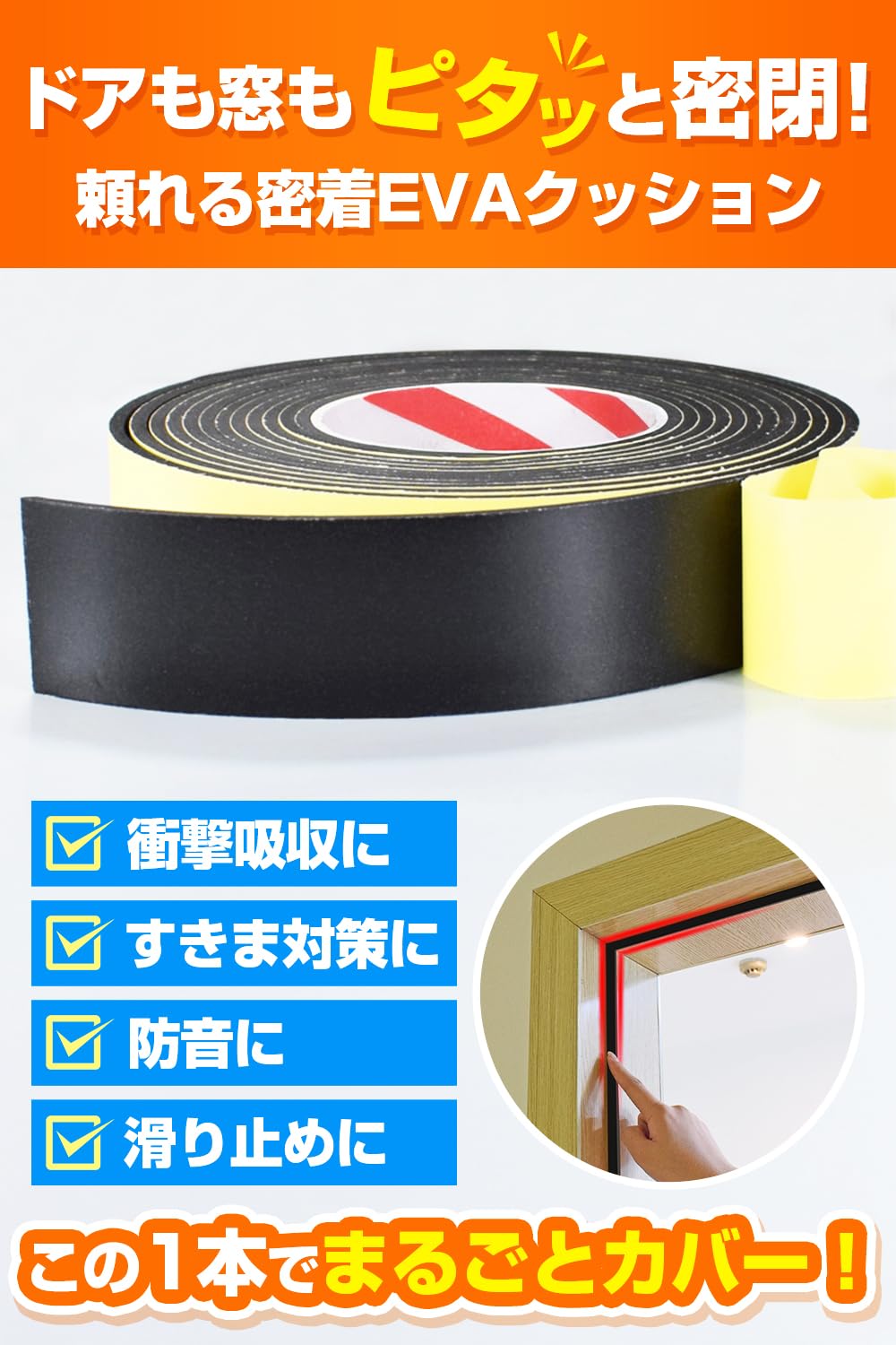 【EVAフィット&高密度クッションテープ】ドアや窓、車のすき間をピタッと密閉!防音・防風・衝撃吸収・滑り止めをこれ1本で実現する多用途テープ。