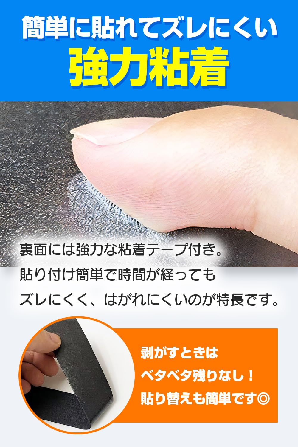 2. 強力粘着でズレにくい:裏面の強力両面テープが長時間の使用でも剥がれにくく、ピタッと密着。貼り替えも簡単で跡残りなし。