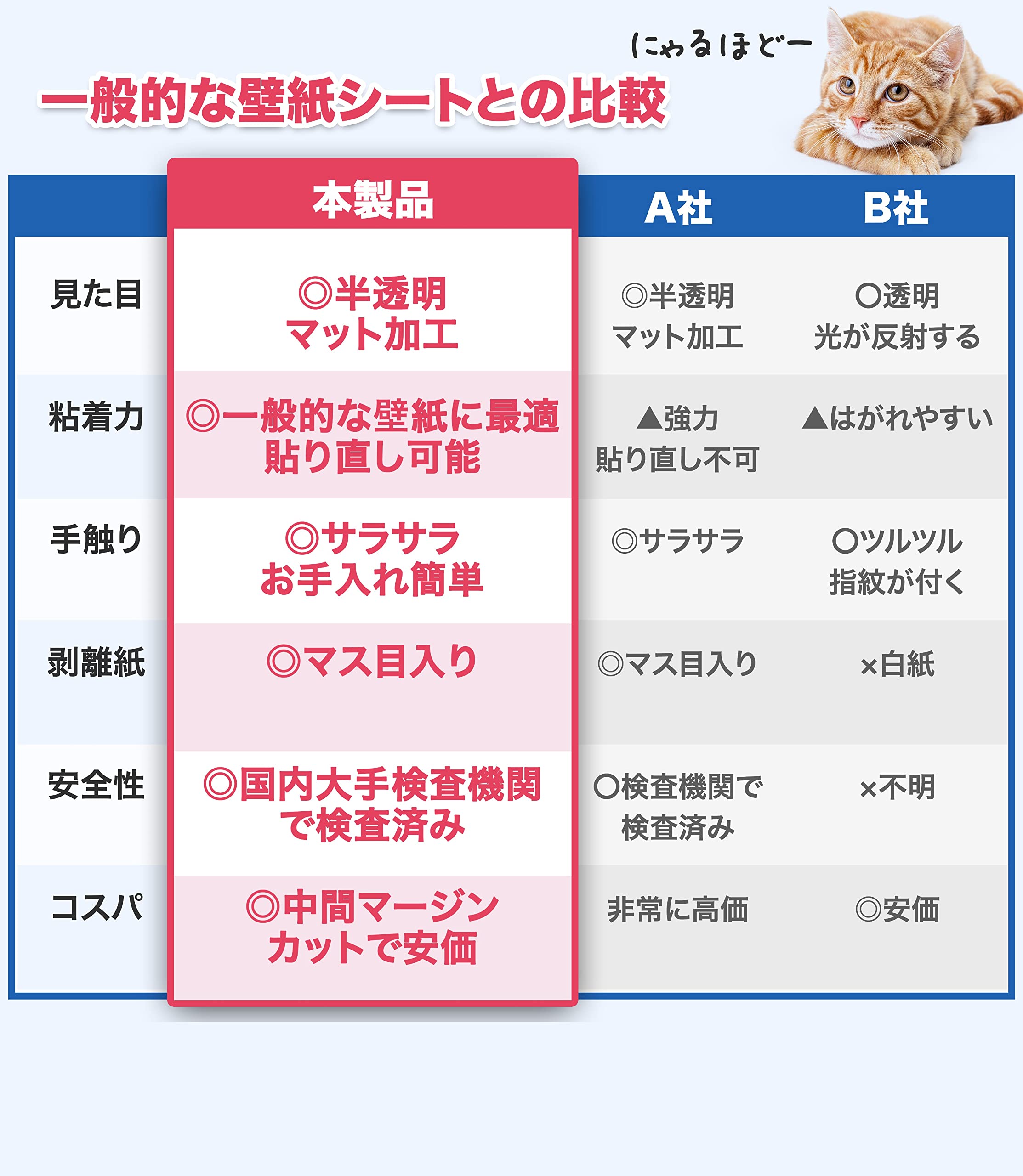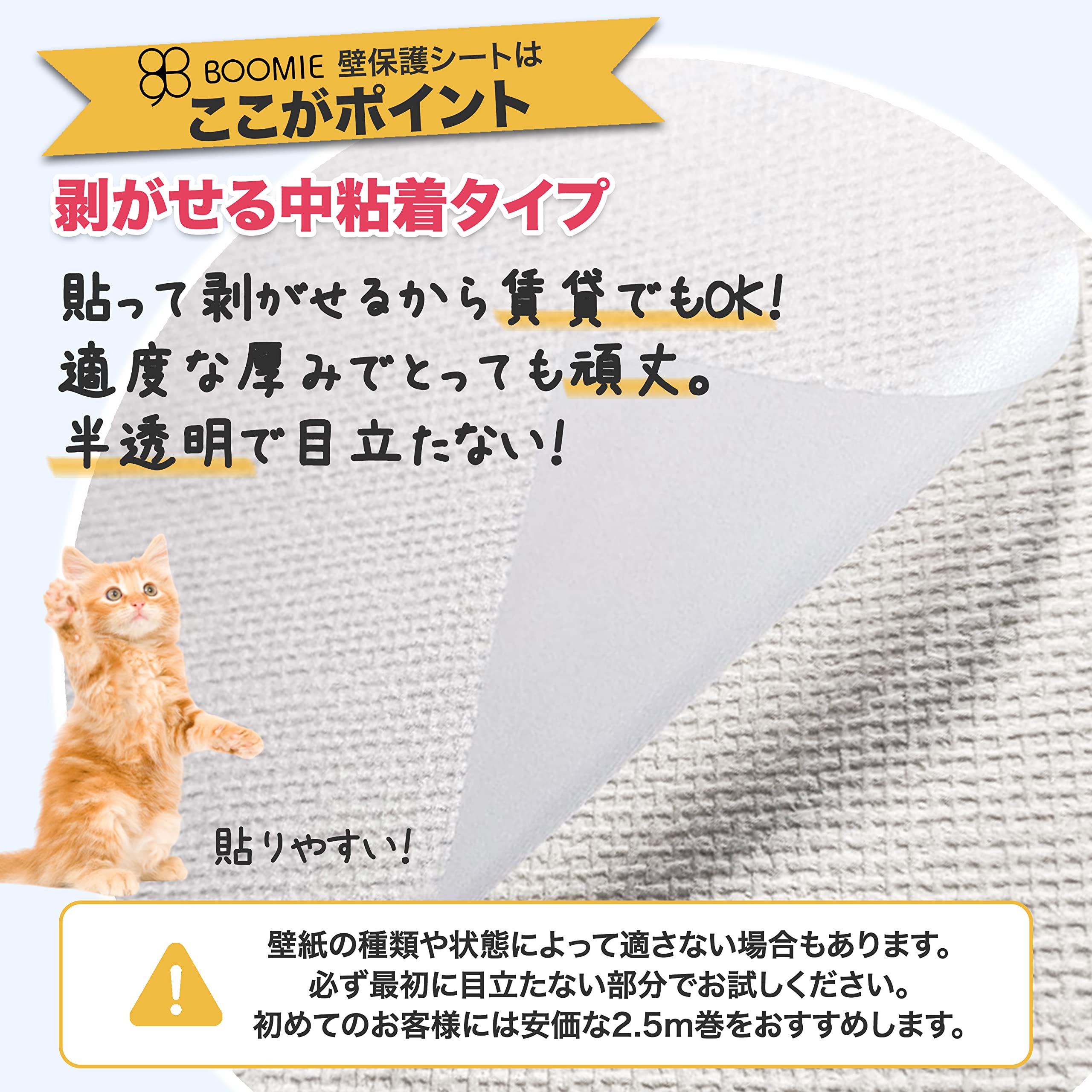 BOOMIE【ニャンとも不思議な壁保護シート】はがせる 猫 壁紙保護 シート ひっかき 防止 壁 半透明 ねこ しつけ用品 (44cm×2.4m)