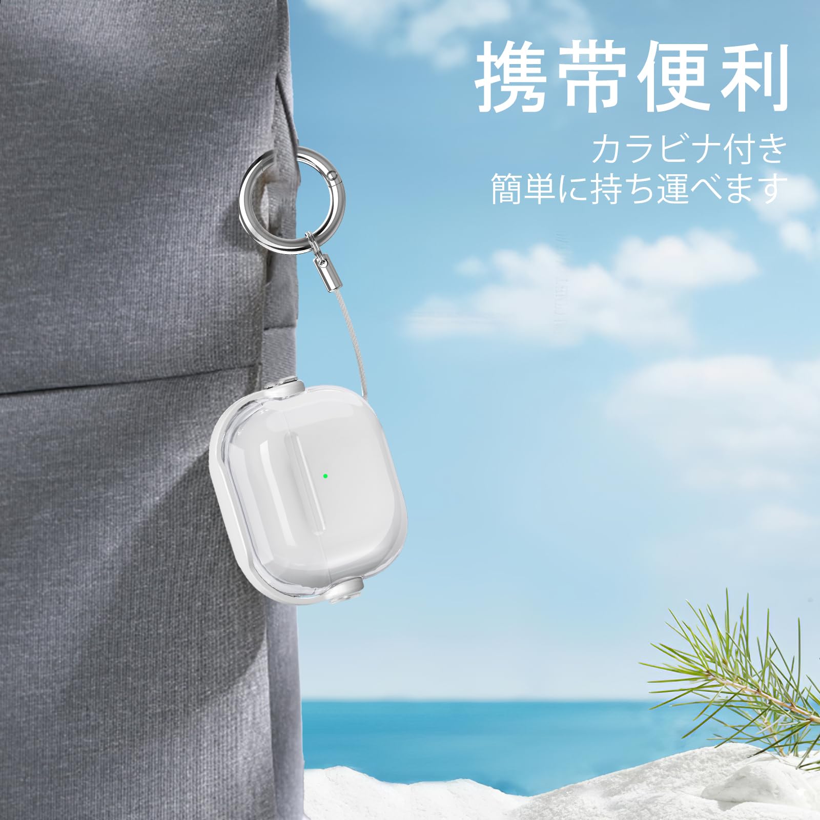 【特価在庫】【2024年発売】Airpods 4 ケース AirPods 第4世代 ケース TPU 透明 ロック付き 装着充電可能 耐衝撃 軽量 キズ防止 おしゃれ ワイヤレス充電対応 カラビナ付き Airpods 4 対応 保護カバー スタンド機能付き (透明+ホワイト)