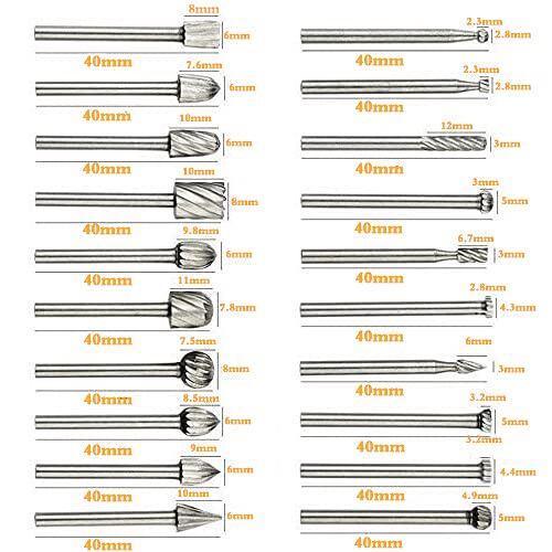 KIMLONTONロータリーヤスリ 3.175mm軸 20本セットタングステンバー リューター ビット 超硬バー 高速度鋼製 木工彫刻 切削 研磨用 木工ツール