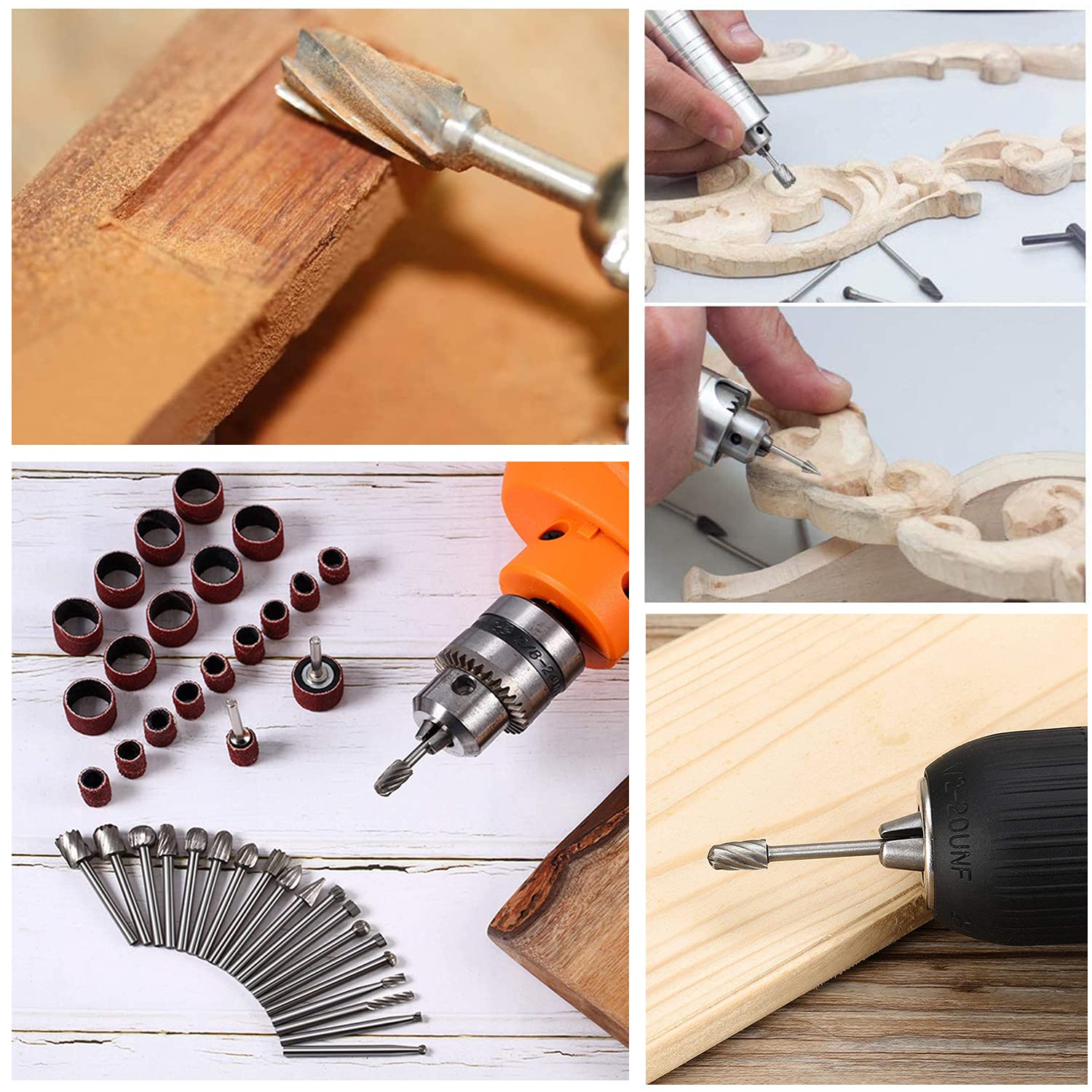 幅広い用途:回転ヤスリは木工彫刻、研磨、菩提加工などに適しています。各樹脂の彫刻、木彫り、木の根彫刻、核彫刻、プラスチックなどの柔らかい材料に適用します。とくに木彫りのときにとても便利です。ひじょうに使いやすくて助かっています。注意: 優れた機能と工具の保護のために、金属の彫刻には適していません。