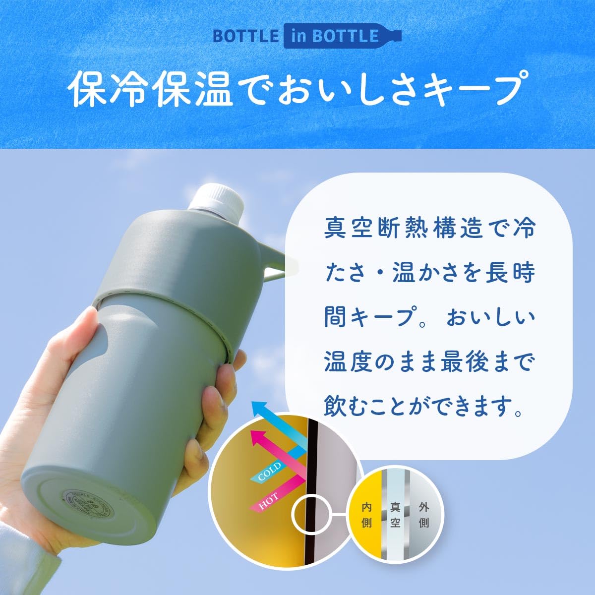 【セール】アトラス ペットボトルホルダー 水筒 保冷 ペットボトルクーラー 500ml 650ml 真空断熱 ブラック ハンドル 取っ手付き ボトルインボトル ABIB-CBK