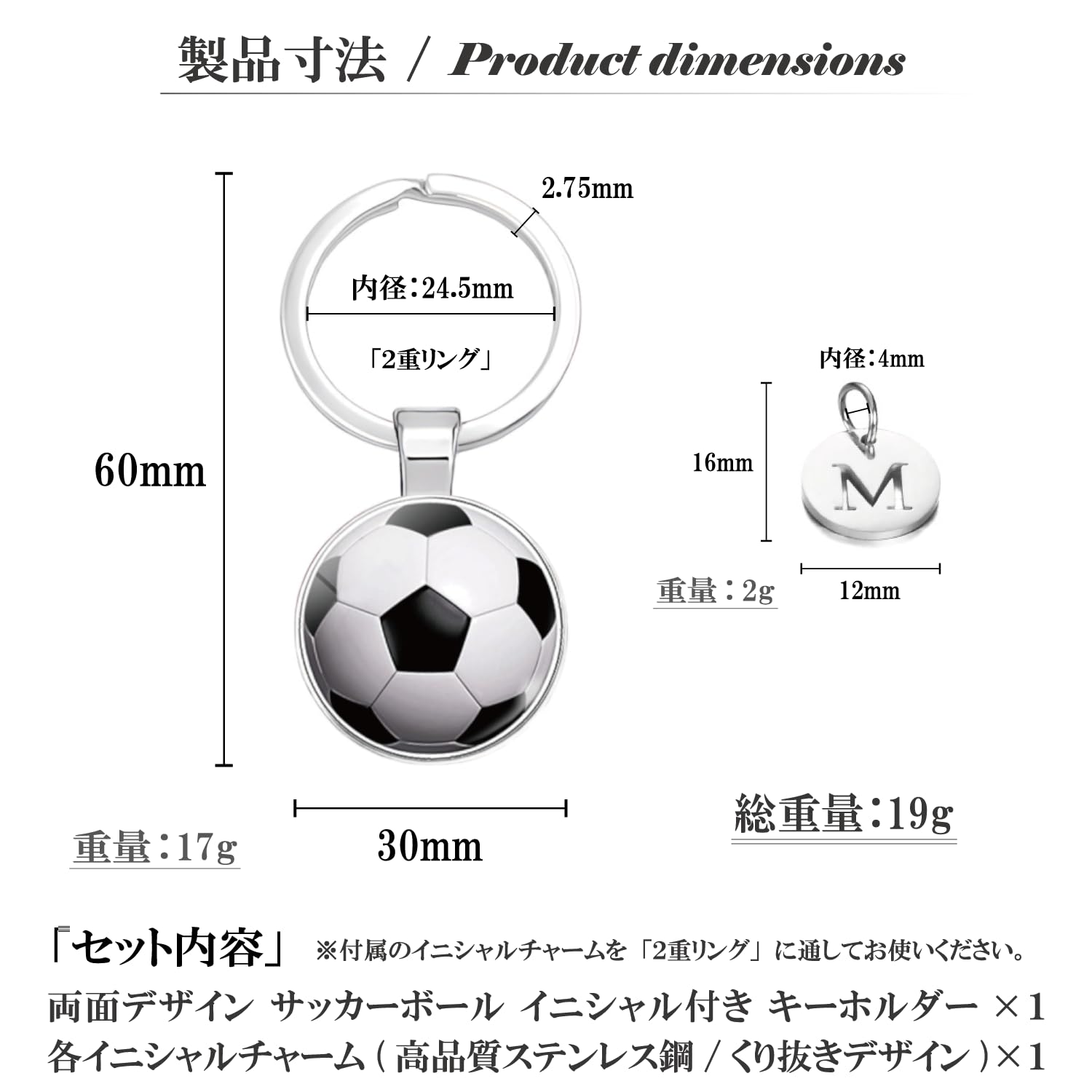 サッカー キーホルダー イニシャル 小さい 試合 応援 グッズ サッカーボール 名入れ アルファベット 筆箱 鞄 飾り バッグ チャーム 小 名前 [並行輸入品]