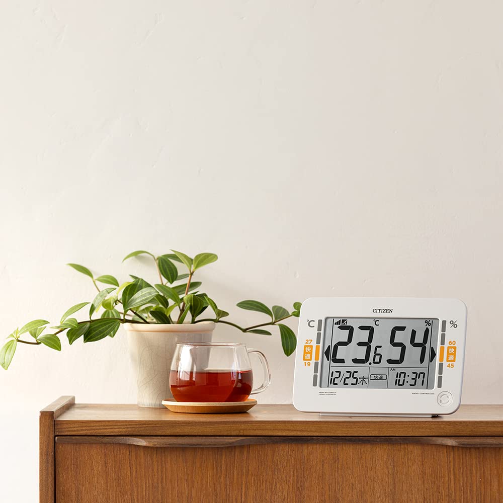 リズム(RHYTHM) シチズン 温度湿度計 高精度 デジタル (電波時計 機能付き) カレンダー 環境目安表示 ホワイト (白) CITIZEN 13.2x18.6x5.3cm 8RZ232-003