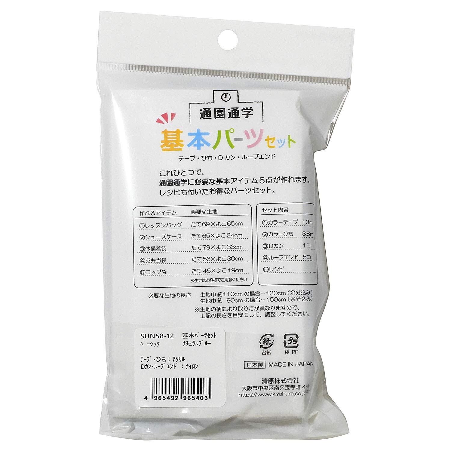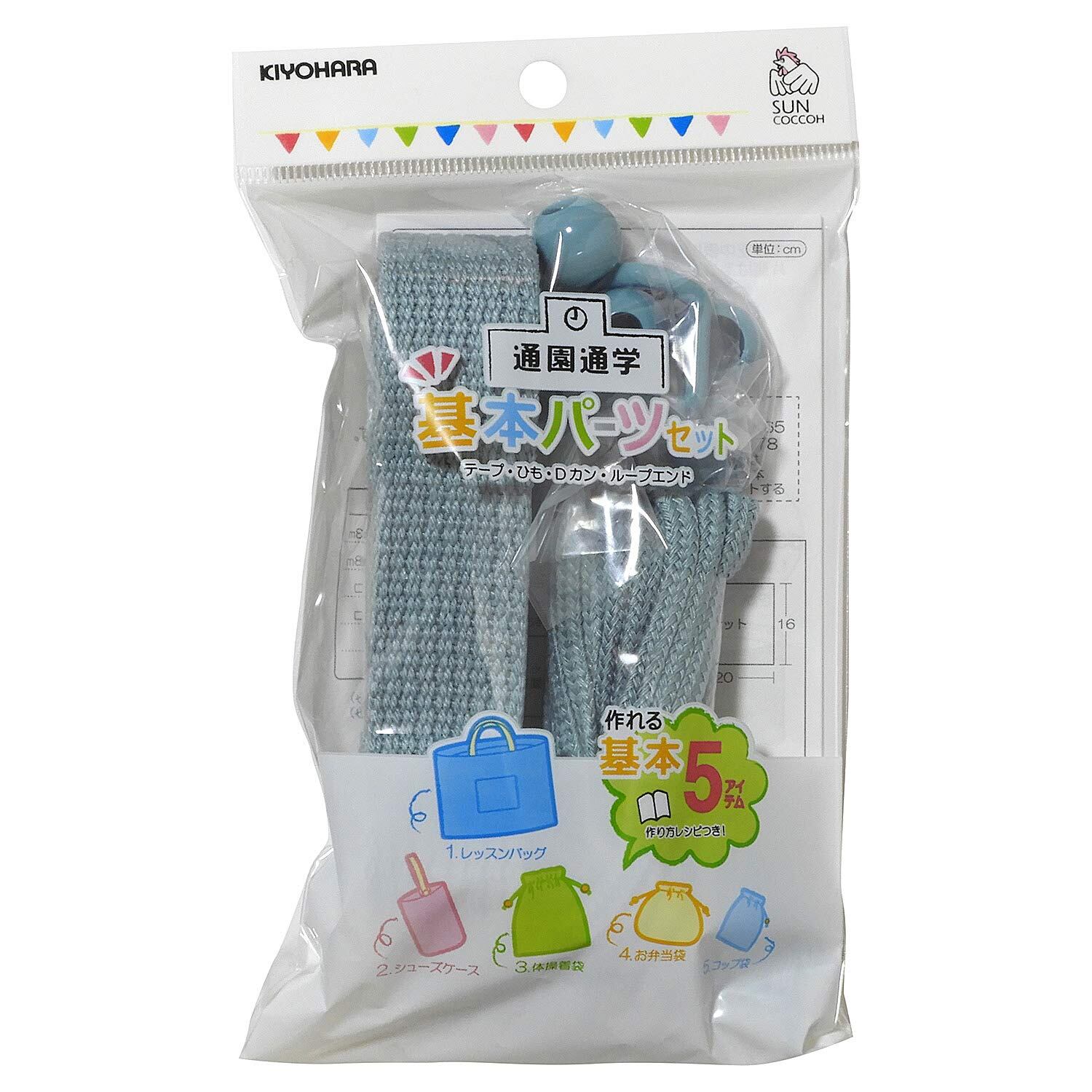 KIYOHARA サンコッコー 通園通学 基本パーツセット ベーシック ナチュラルブルー 入園入学アイテム5点が作れるレシピ付 SUN58-12