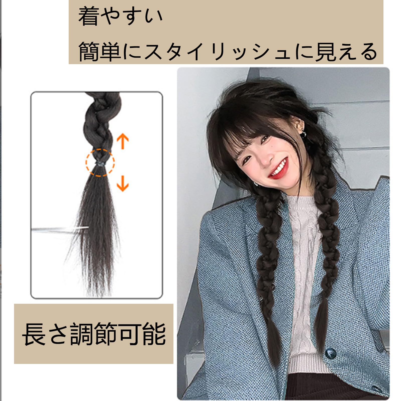 ?素材:高級耐熱ファイバー。ポニーテールに取り付けられた編み込みウィッグは、ショートヘアでもロングヘアでも、どんなスタイルにも合わせることができます。