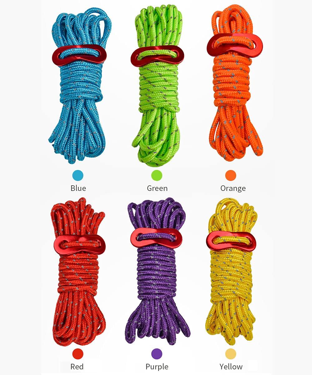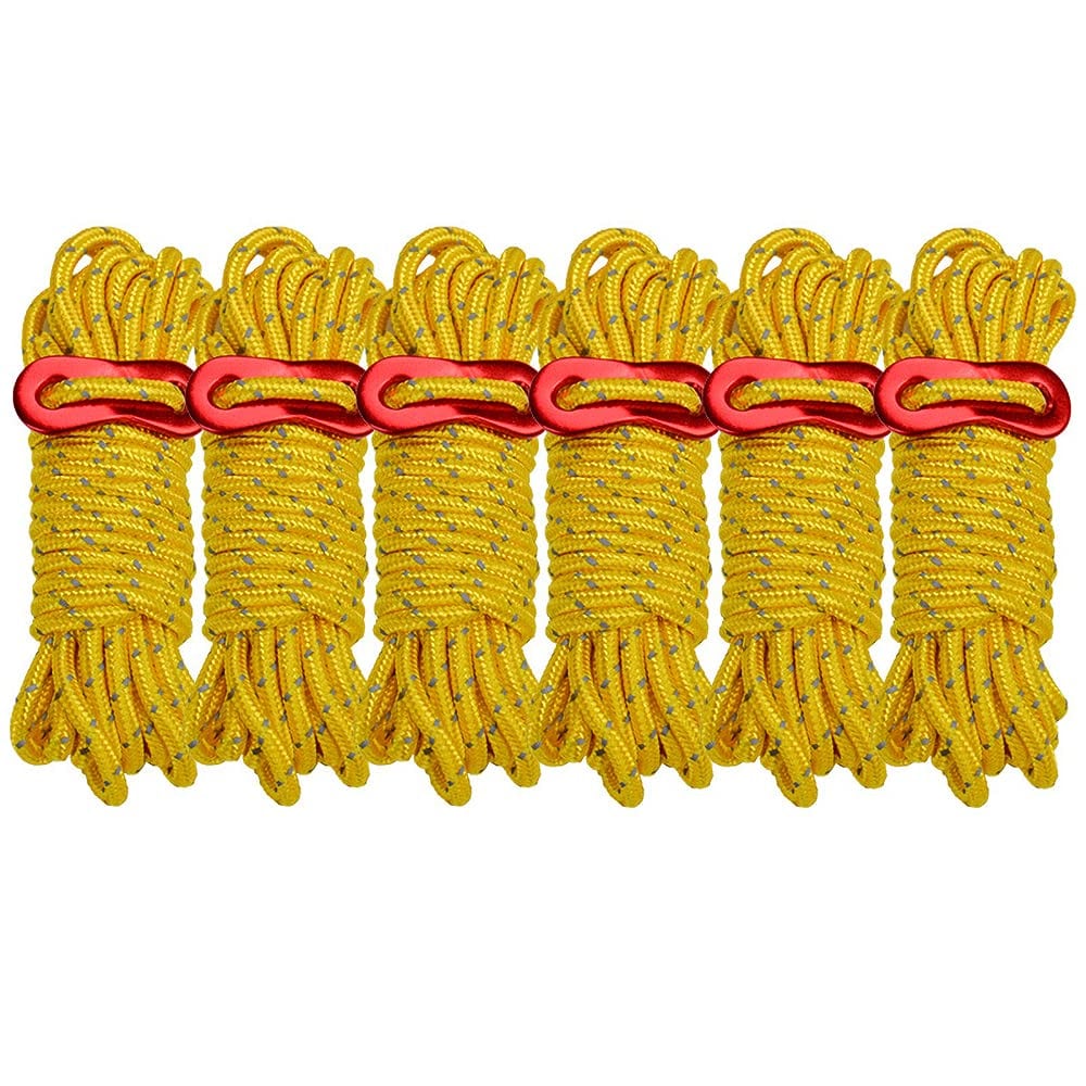 ガイロープ パラコード ロープ テントロープ ガイライン タープロープ 反射 4mm *4m キャンプ アウトドア アルミニウム 自在金具付き 6本セット