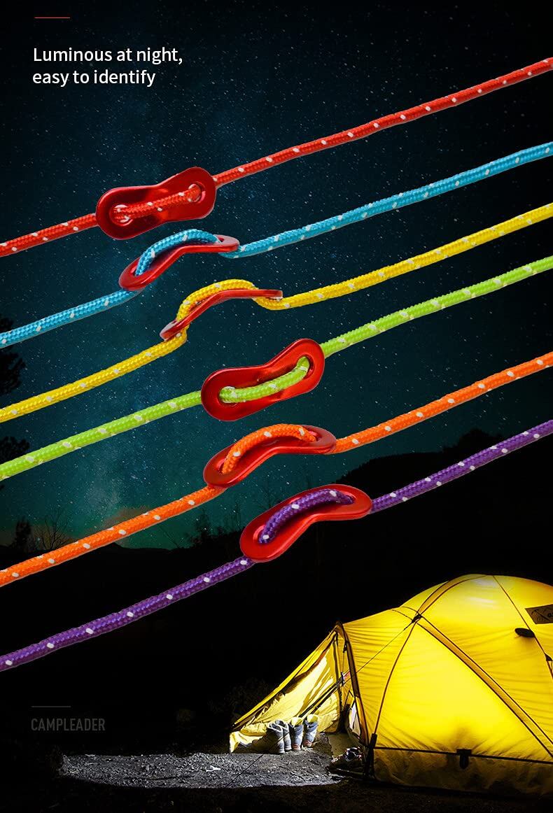 【セット内容】4mm * 4mのロープ ×6本、アルミニウム製自在金具x6個
