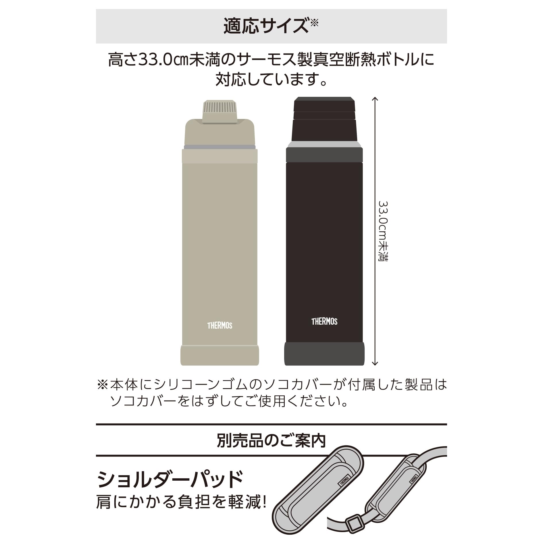 高さ33.0cm未満のサーモス製真空断熱ボトルに対応してます。
