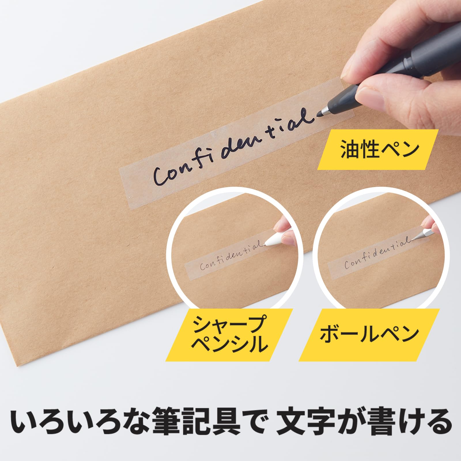 【マットで目立たずキレイな仕上がり】マットフィニッシュ(つや消し加工)で、貼るとほとんど見えなくなる半透明なメンディングテープ。資料の補修や封かんがキレイに仕上がります。鉛筆や油性ペンでも上から文字が書けるので、ラベルとしても活用できます。ラッピングにもお使いただけます。