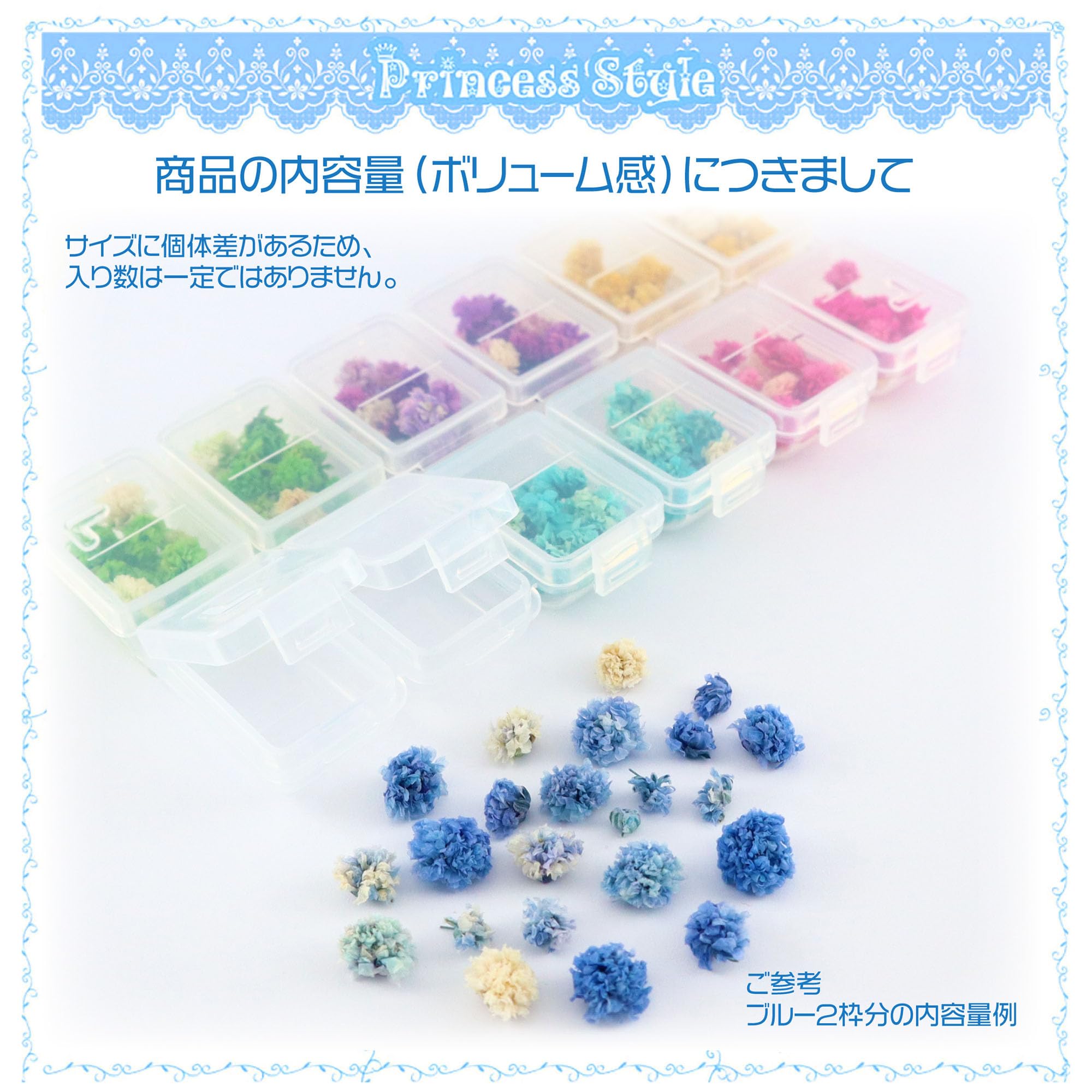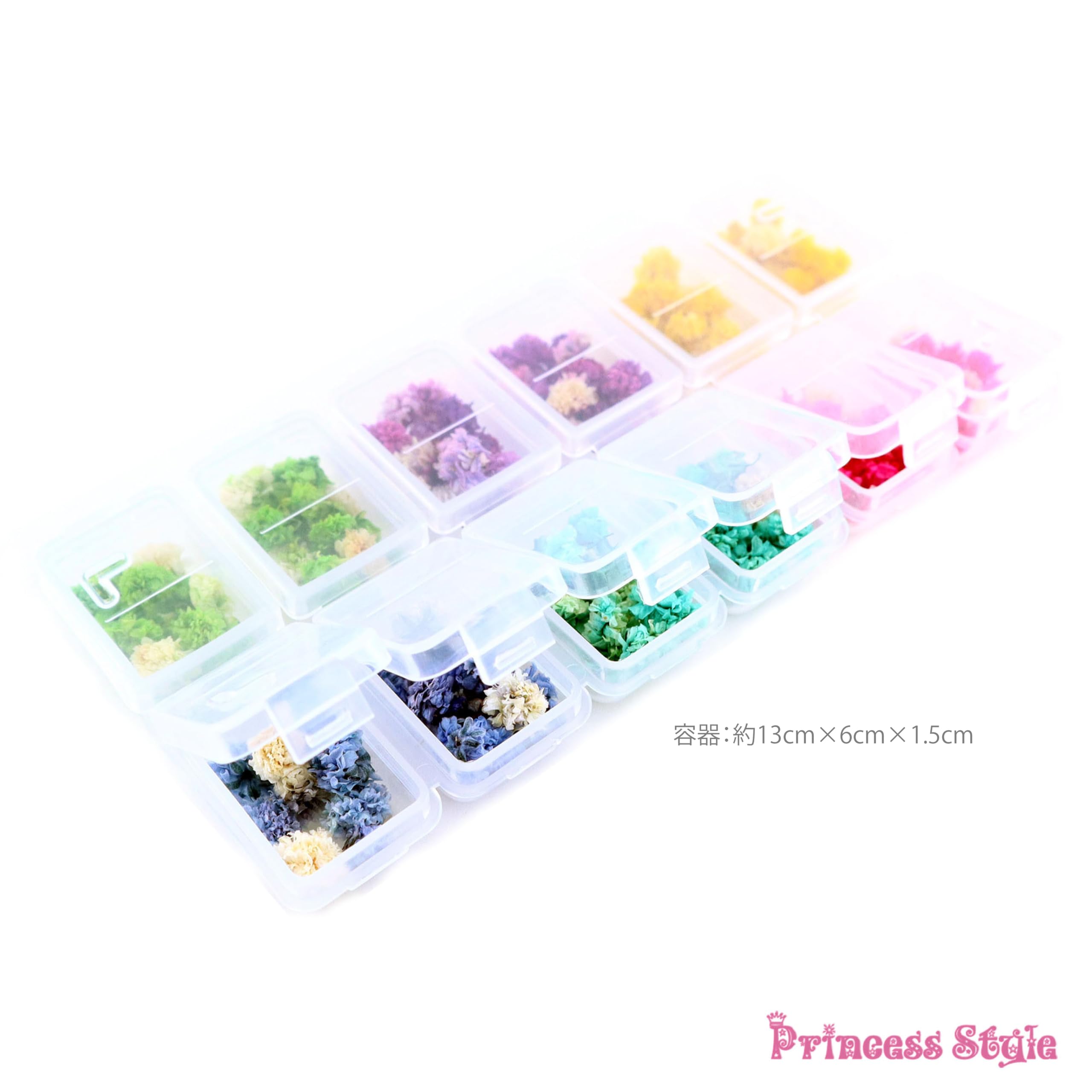 かすみ草 ドライフラワー 花頭 咲いた花 ネイル レジン 封入 素材 材料 花材 12マスケース入り 6色セット