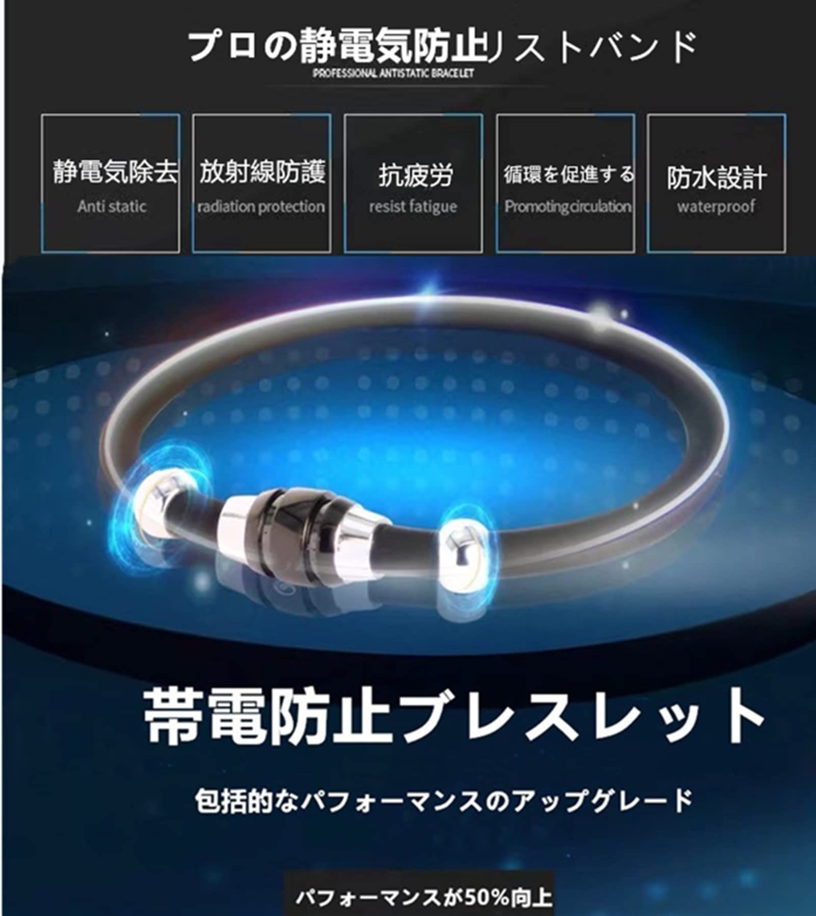 【静電気除去 ブレスレット】静電気防止ブレスレットは、磁気リングを形成することで人体の電流の正負比を調整し、静電気を除去する効 果 を実現します。