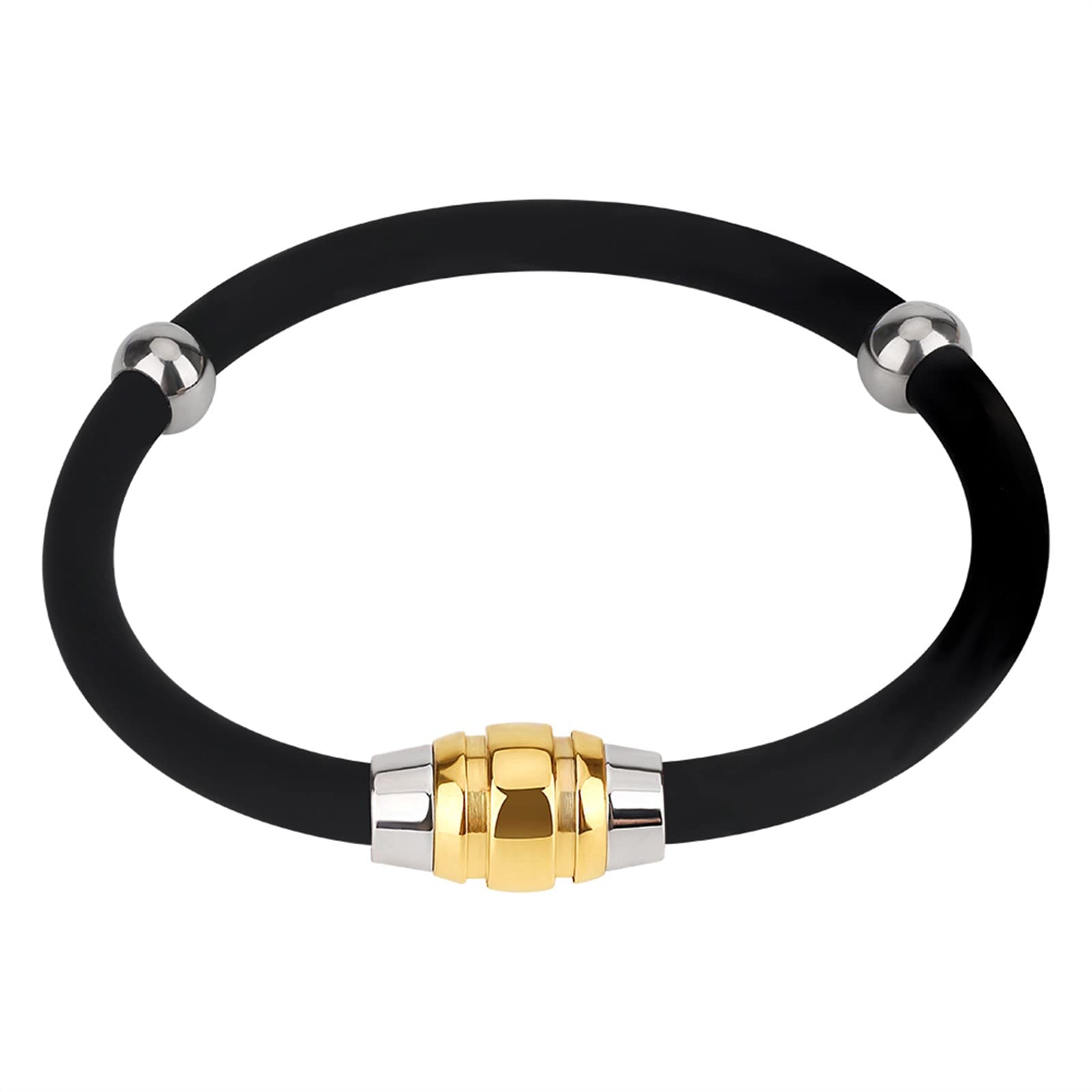 【サイズ材料】シリコーン+チタン鋼+磁石と組み合わせたブレスレットです。変色や錆びに強く、アレルギー反応が出にくい点が特徴です。汗や水にも強いので、スポーツや入浴時も勿論、付けたままでOK!また、お手入れが簡単なのもうれしい特徴です。すべての年齢のため。