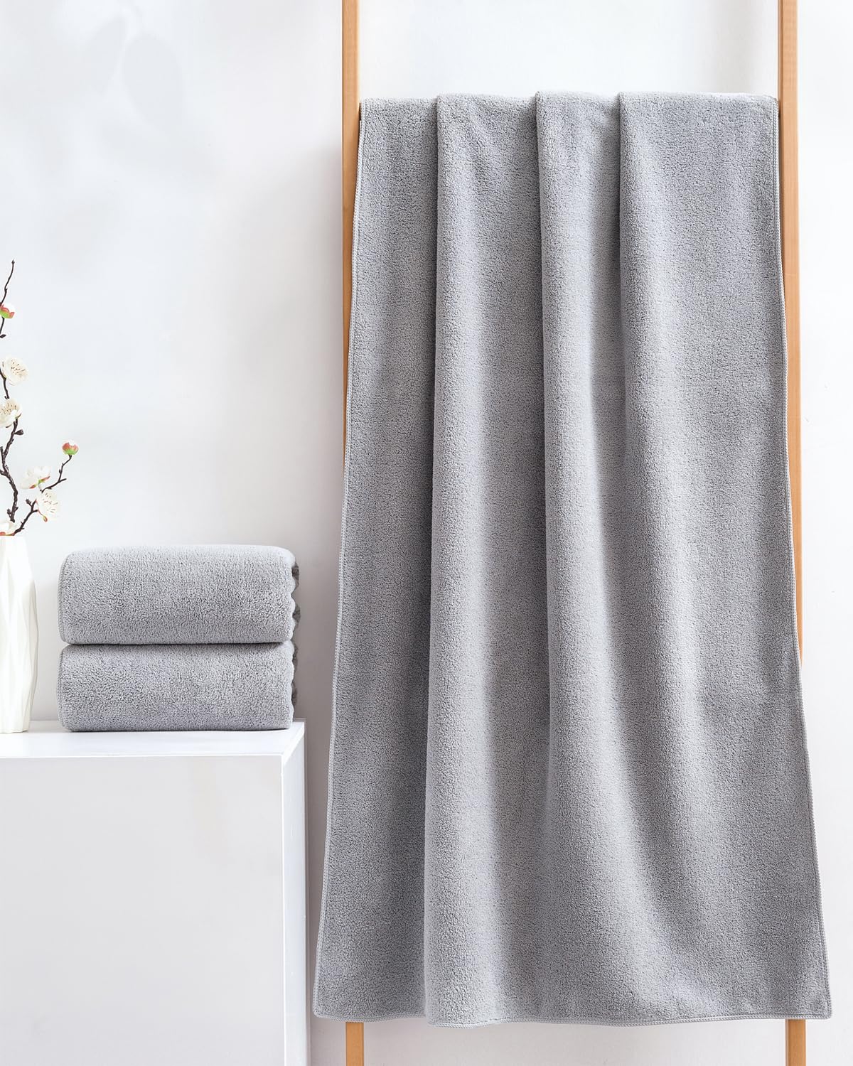 【人気】バスタオル [Lumimi 2枚セット ライトグレー 70*140cm ] ふわふわ 大判 吸水速乾 ホテル仕様 柔らか肌触り エステタオル 業務用 サロンタオル お風呂上がり耐久性 バス用品