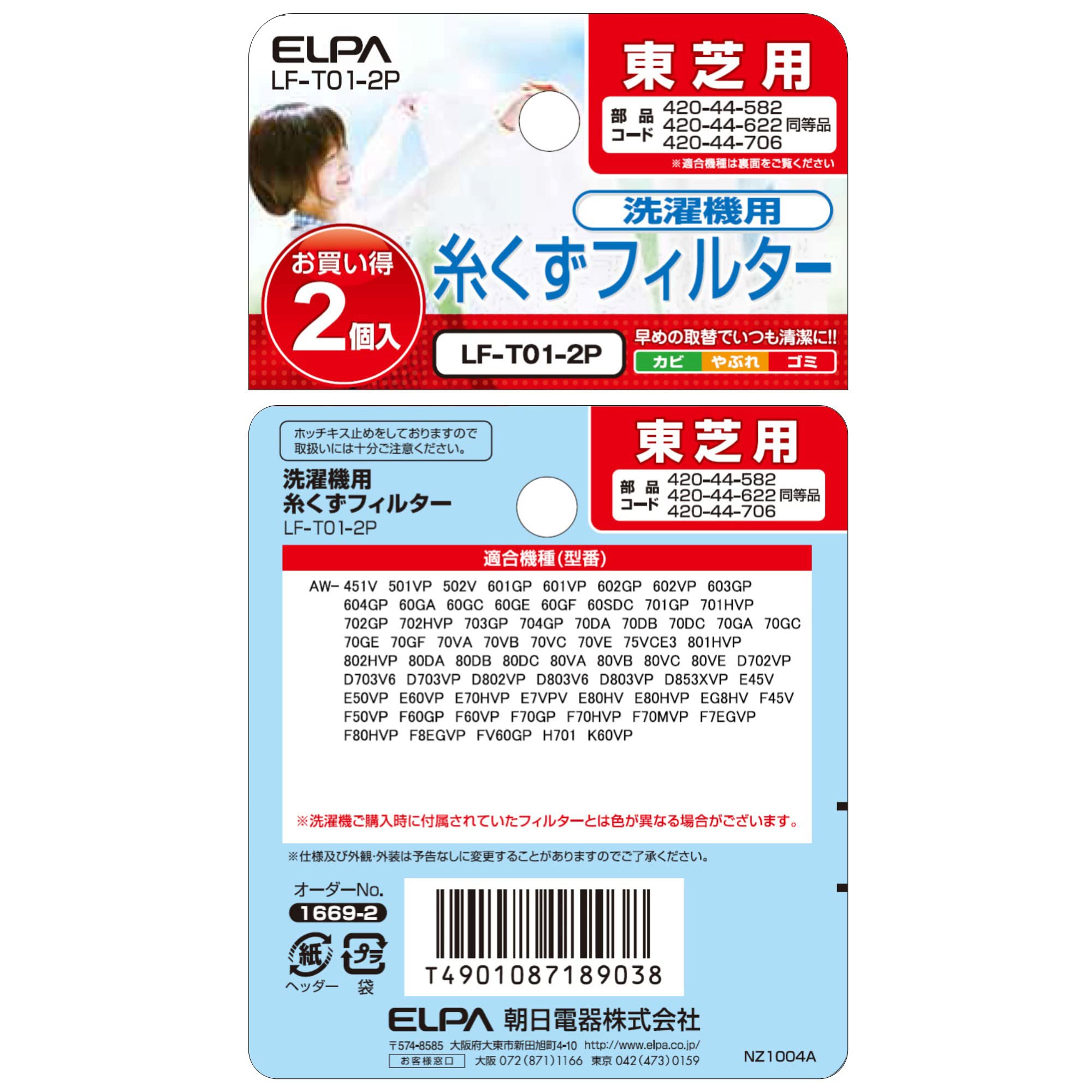 エルパ (ELPA) 洗濯機用 糸くずフィルター (東芝 純正 / 420-44-582 / 420-44-622 / 420-44-706) 洗濯機用フィルター/ごみ取りネット / 2個入り (LF-T01-2P)
