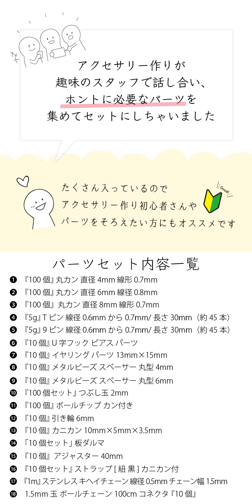 セット内容 『100個 丸カン 直径4mm 線形0.7mm』 『100個 丸カン 直径6mm 線径0.8mm』 『100個 丸カン 直径8mm 線形0.7mm』『5g Tピン 線径0.6mmから0.7mm/長さ30mm(約45本前後)』