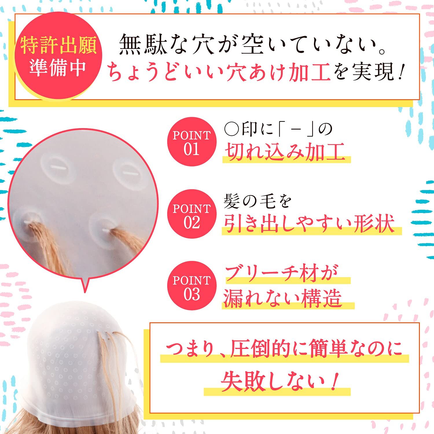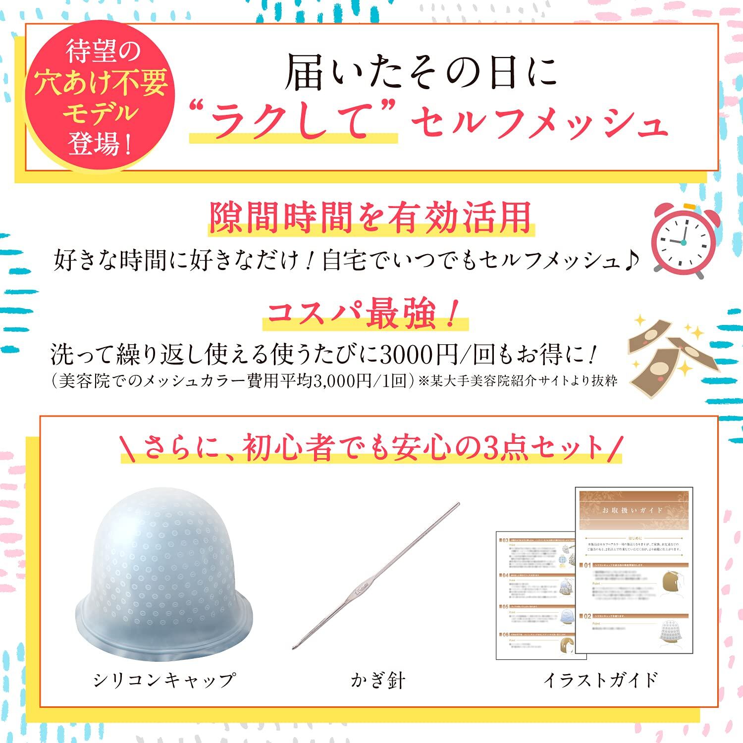 【数量限】fungoo【現役美容師監修】 穴あけ不要 ハイライトキャップ 失敗しないガイド付 穴あき済み メッシュキャップ ヘアカラー 穴あき セルフメッシュ ヘアカラーボウル 毛染めキャップ (穴あき3点セット)