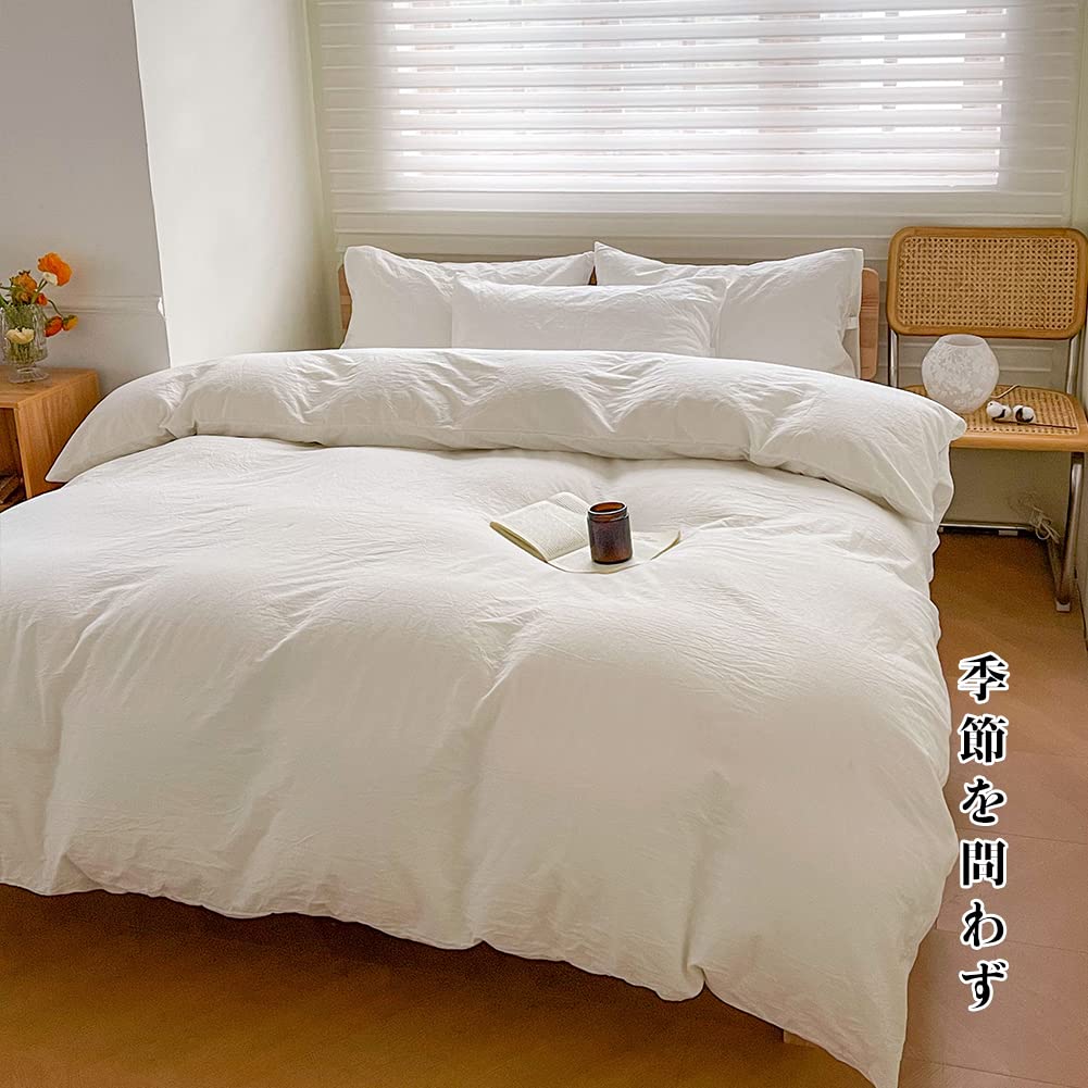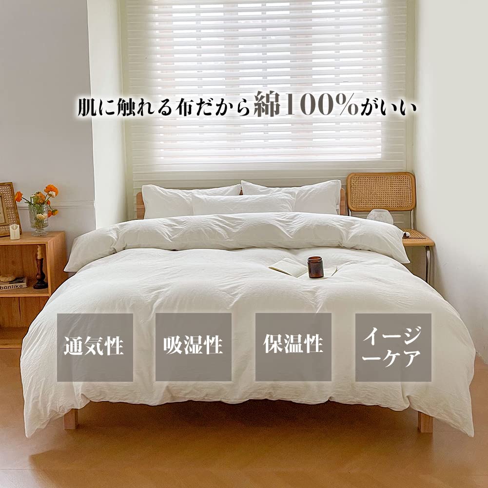 掛け布団カバー シングル オーガニックコットン 綿100% 掛けふとんカバー ふとんカバー 布団カバー 綿洗いざらし オールシーズン 無地 北欧 150*210CM 8ヶ所ヒモ付き 洗い替え 防ダニ 防シワ 速乾 通気 オフホワイト