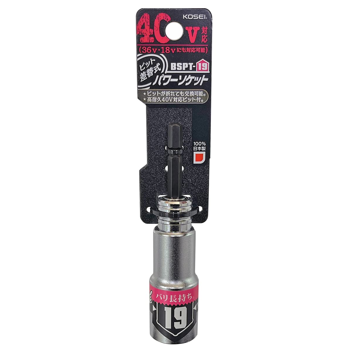 【数量限】ベストツール KOSEI 40V対応 ビット差替式パワーソケット 19mm 差込角6.35mm インパクトドライバー用ソケット 六角深穴タイプ 高耐久鋼NKD-1仕様 18V対応 36V対応 日本製 BSPT-19 コーセイ