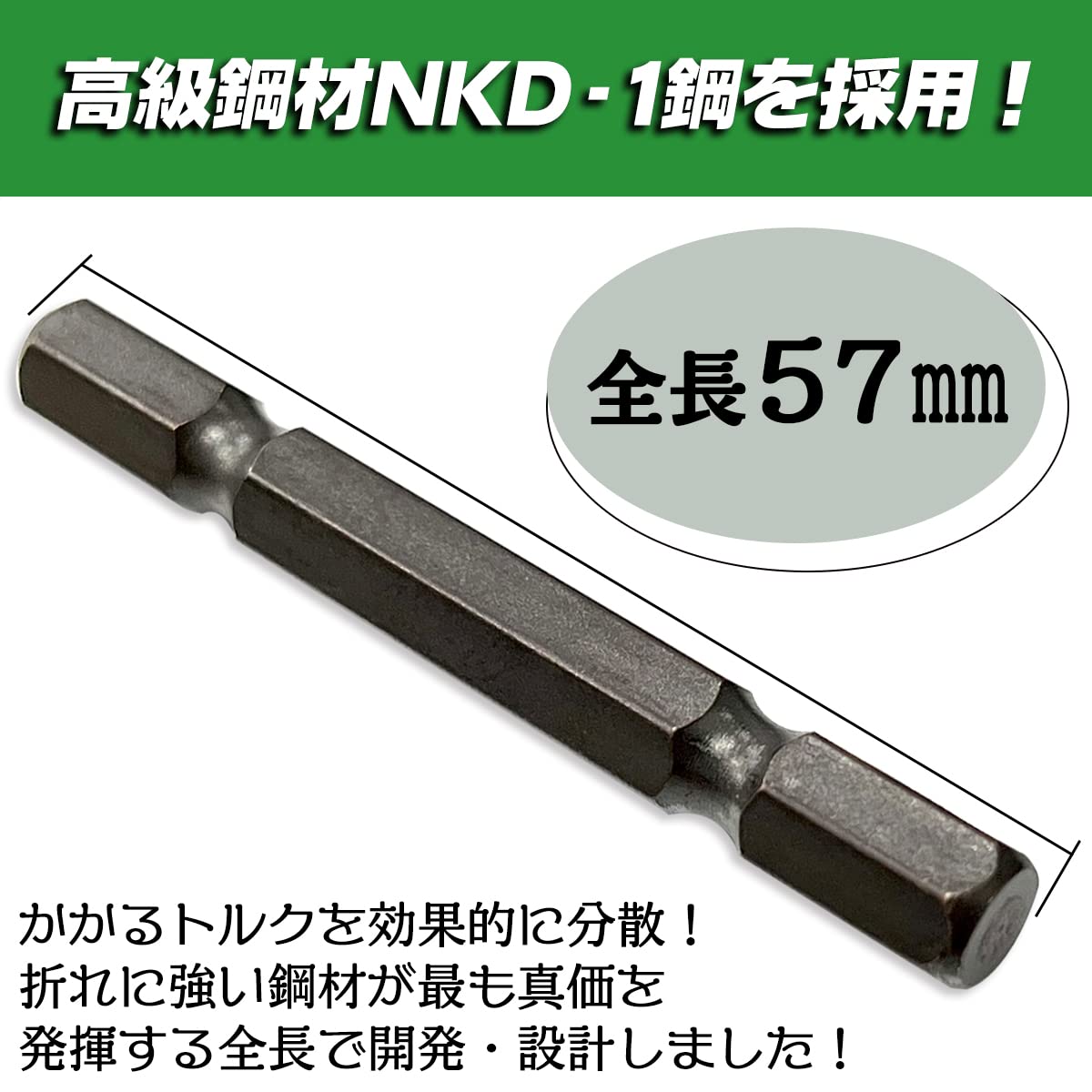 ●高級鋼材NKD-1を採用:かかるトルクを効果的に分散!折れに強い鋼材が最も真価を発揮する全長で開発・設計しました。