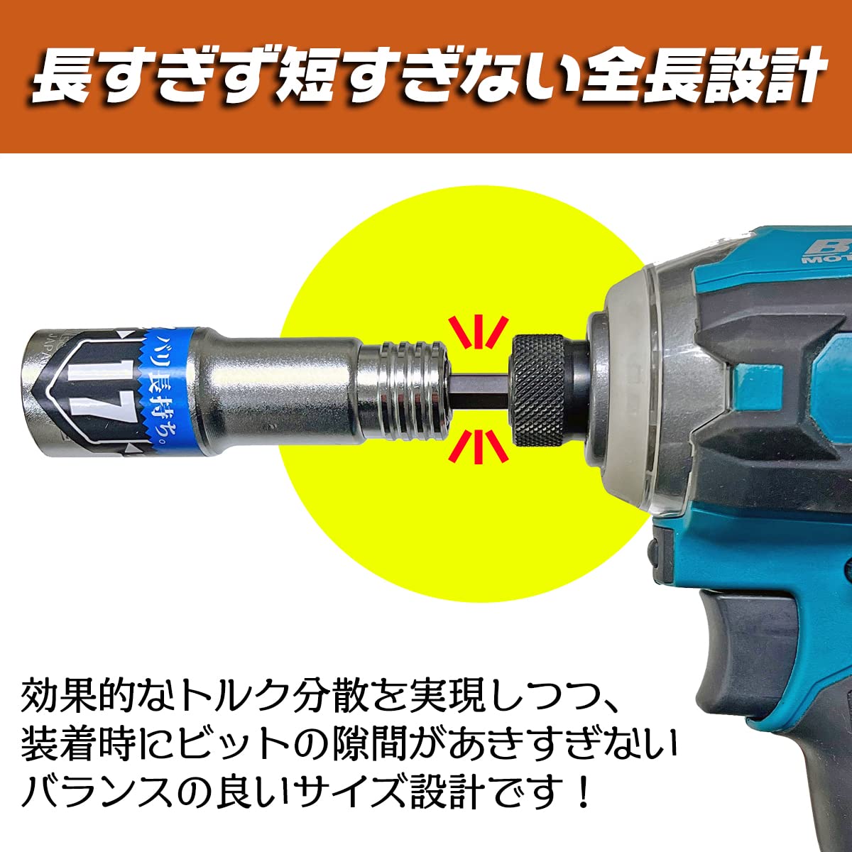 ●長すぎず短すぎない全長設計:効果的なトルク分散を実現しつつ、装着時にビットの隙間があきすぎないバランスの良いサイズ設計です!