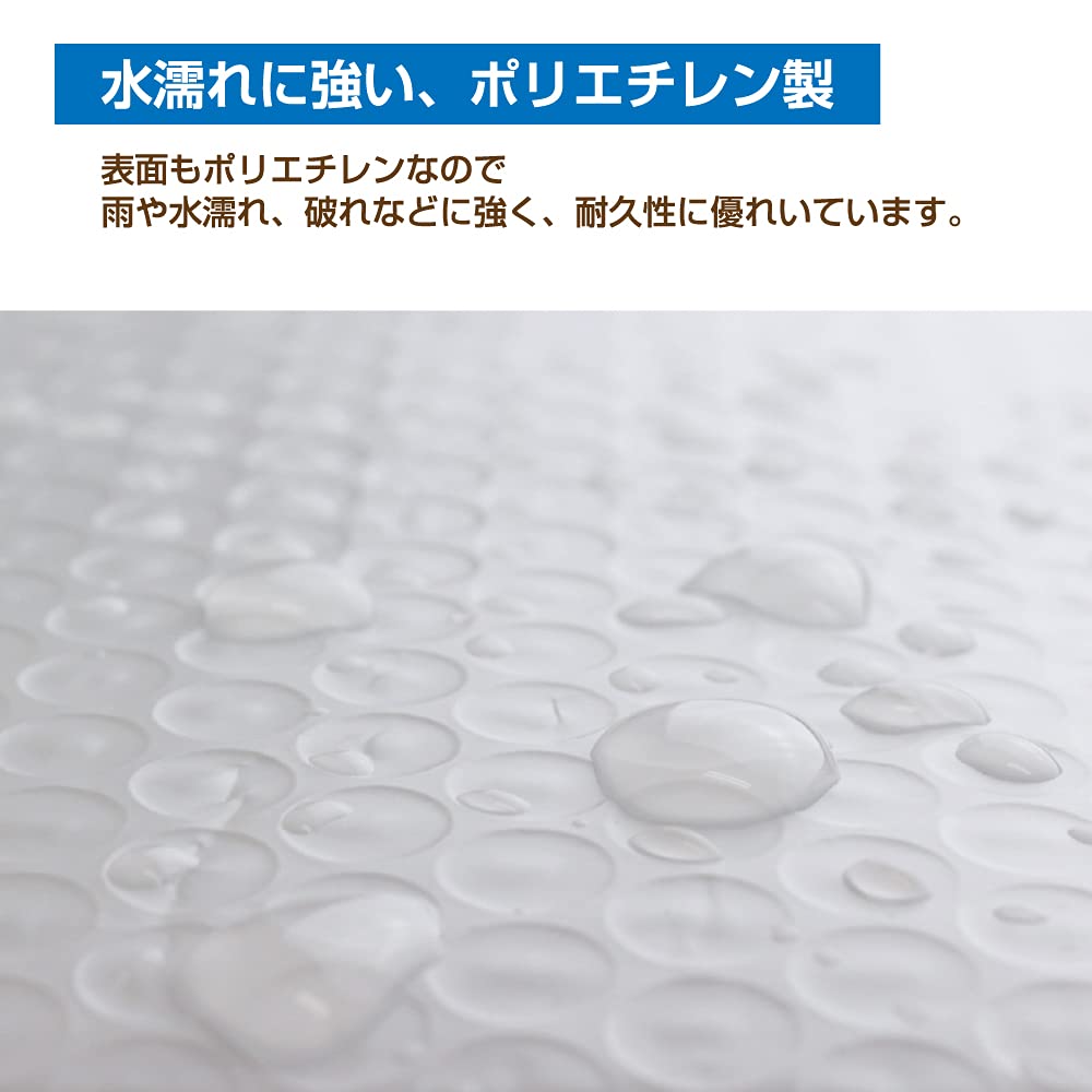 表面もポリエチレンなので雨や水濡れ、破れなどに強く耐久性に優れています。