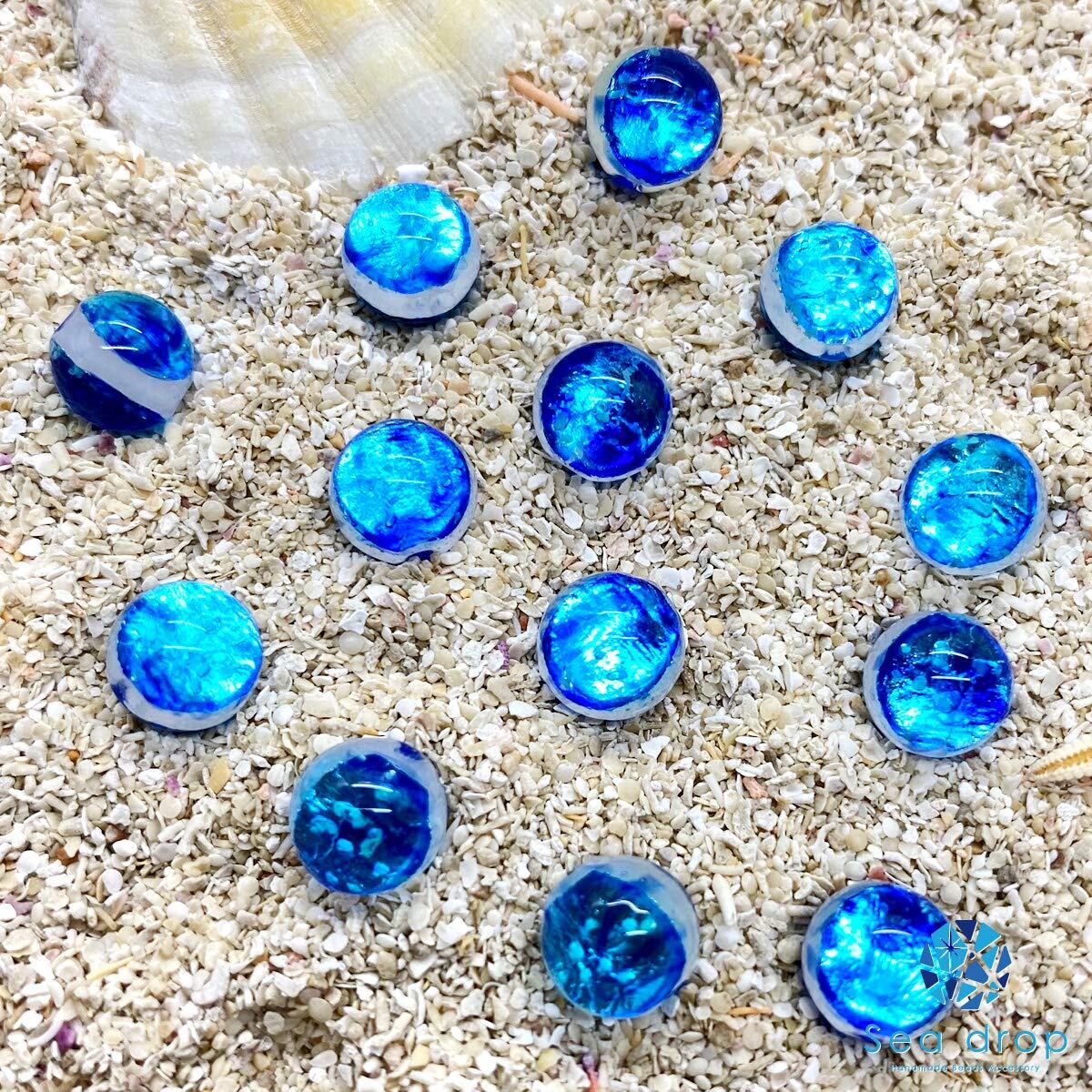 Sea drop 光る ホタルガラス ミヤコマリン8mm 半連 25玉 約20cmビーズ 蓄光 とんぼ玉 [029htt-08]