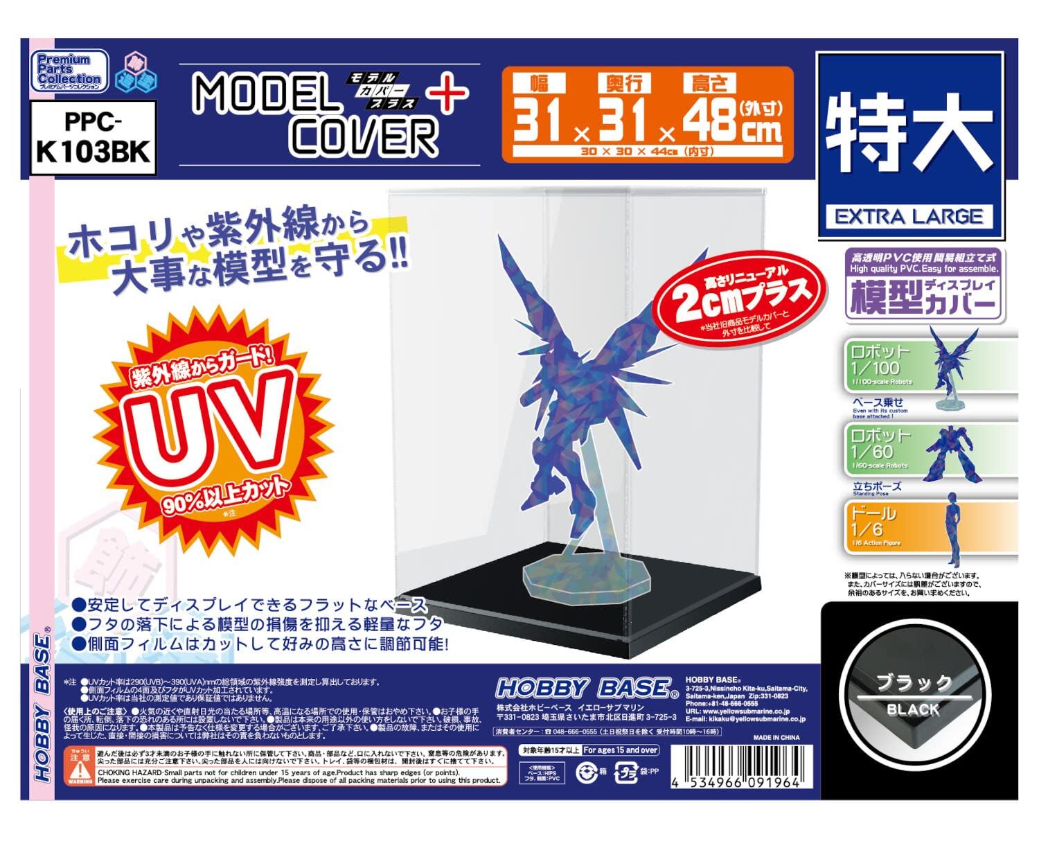 【数量限】ホビーベース プレミアムパーツコレクション モデルカバープラス 特大 ベースカラーブラック PVC製 W30×D30×H44cm(内寸) K103BK ディスプレイケース | GIGATERA