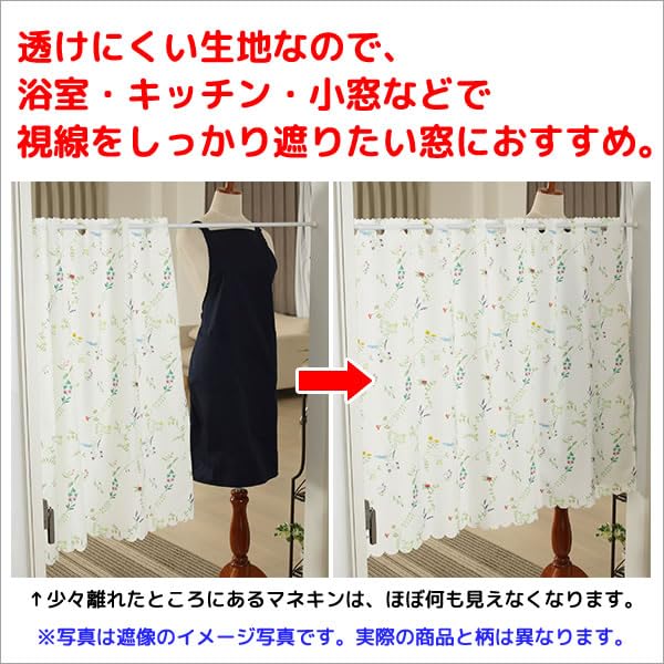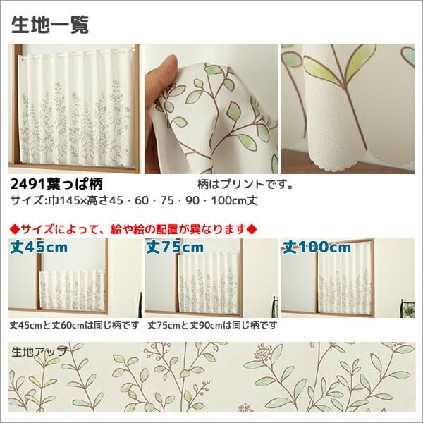 カフェカーテン はっ水加工 外から見えない お風呂などで 2491葉っぱ柄 プリント 幅145x丈90cm1枚入