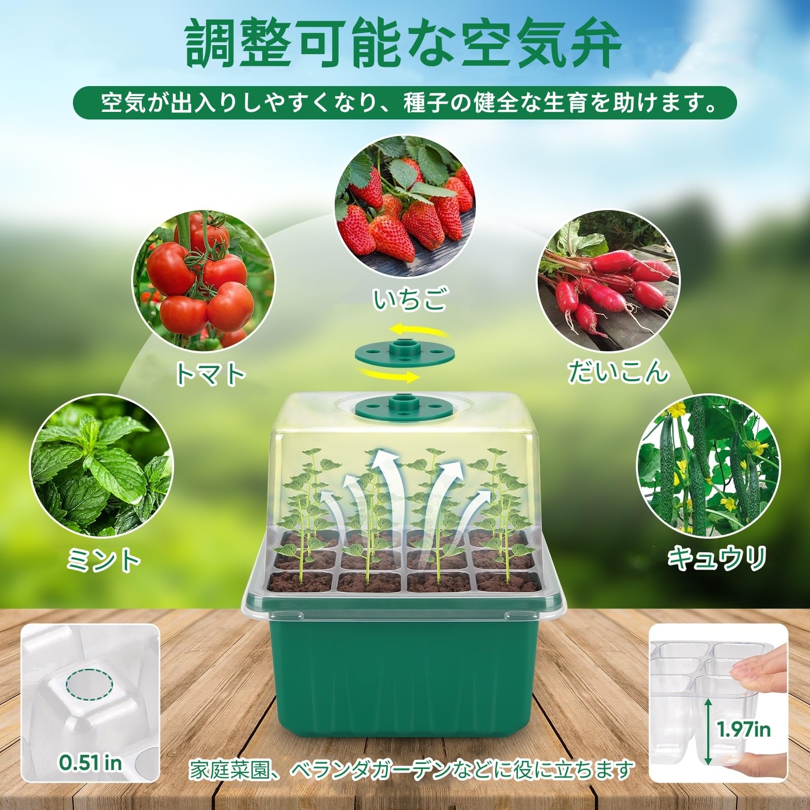 【発芽率の向上】蓋付きのこのシードトレイの調整可能な通気口により、苗の環境の温度と湿度を調整し、蒸発を減らし、発芽プロセスを制御し、苗の生存率を向上させることができます。