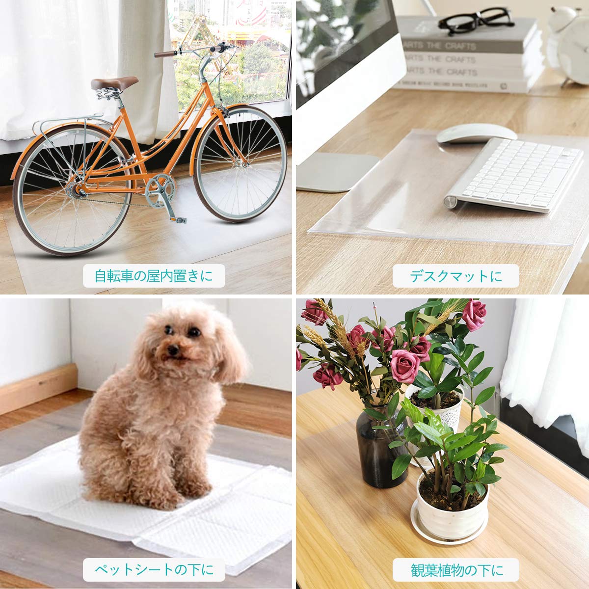 ?【エンボス加工・床暖房対応】マットの表面にはエンボス加工が施してあり、表面はさらっと心地よい感触をもたせ、裏面はツルツルとした面で床と馴染みやすく、ズレにくい仕様となっております。PVC素材特徴の一つは、耐熱性があるので、耐熱温度は85℃まで、床暖房の上に対応可能!飲み物をこぼしてもフローリングや畳に染み込まず清潔をキープ。