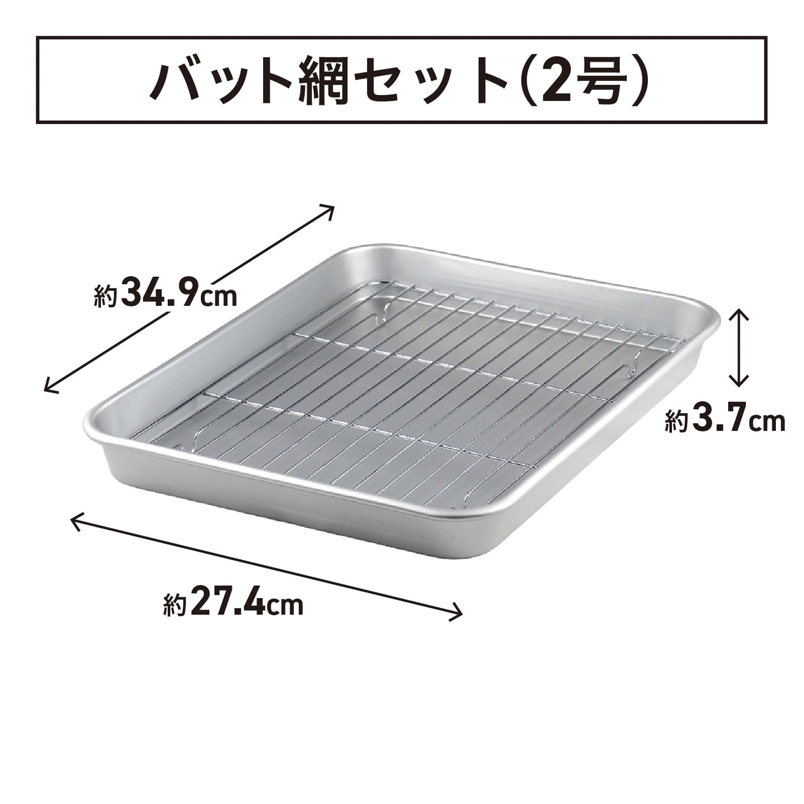 谷口金属 軽量で使いやすい バット トレー アミ付きセット 料理 34.9×27.4cm 2号 日本製 下ごしらえ 揚げ物 天ぷら