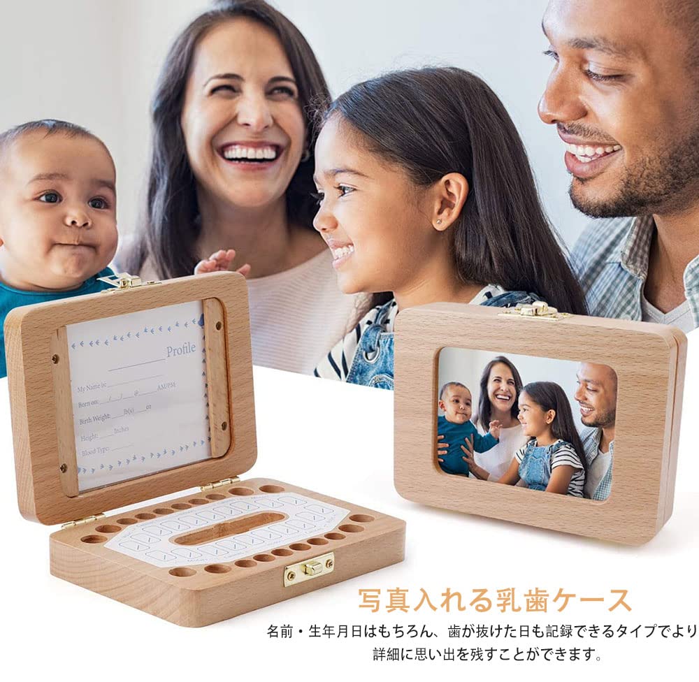 サムコス 乳歯ケース 木製 乳歯入れ 写真入れ 日本語版 子供 歯 保管 収納 記念な乳歯 ベビーメモリアルグッズ 男の子/女の子