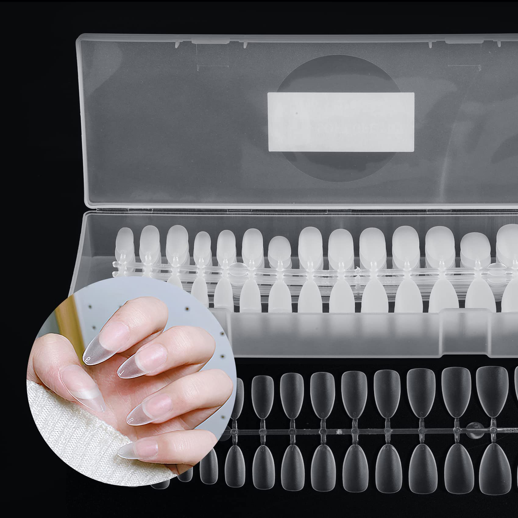 Annhua ネイルチップ クリア 270枚入り ネイル長さだしチップ アーモンド型 ミディアム 透明つけ爪 クリアチップセット サンディング済みネイルチップ ネイルチップ練習 自然なフィット感 強靭 艶消 ケース付き