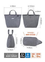 シービージャパン 保冷バッグ お弁当 容量8L 内面アルミ 保冷仕様 アッシュグレー 保冷ランチトート BOCCA
